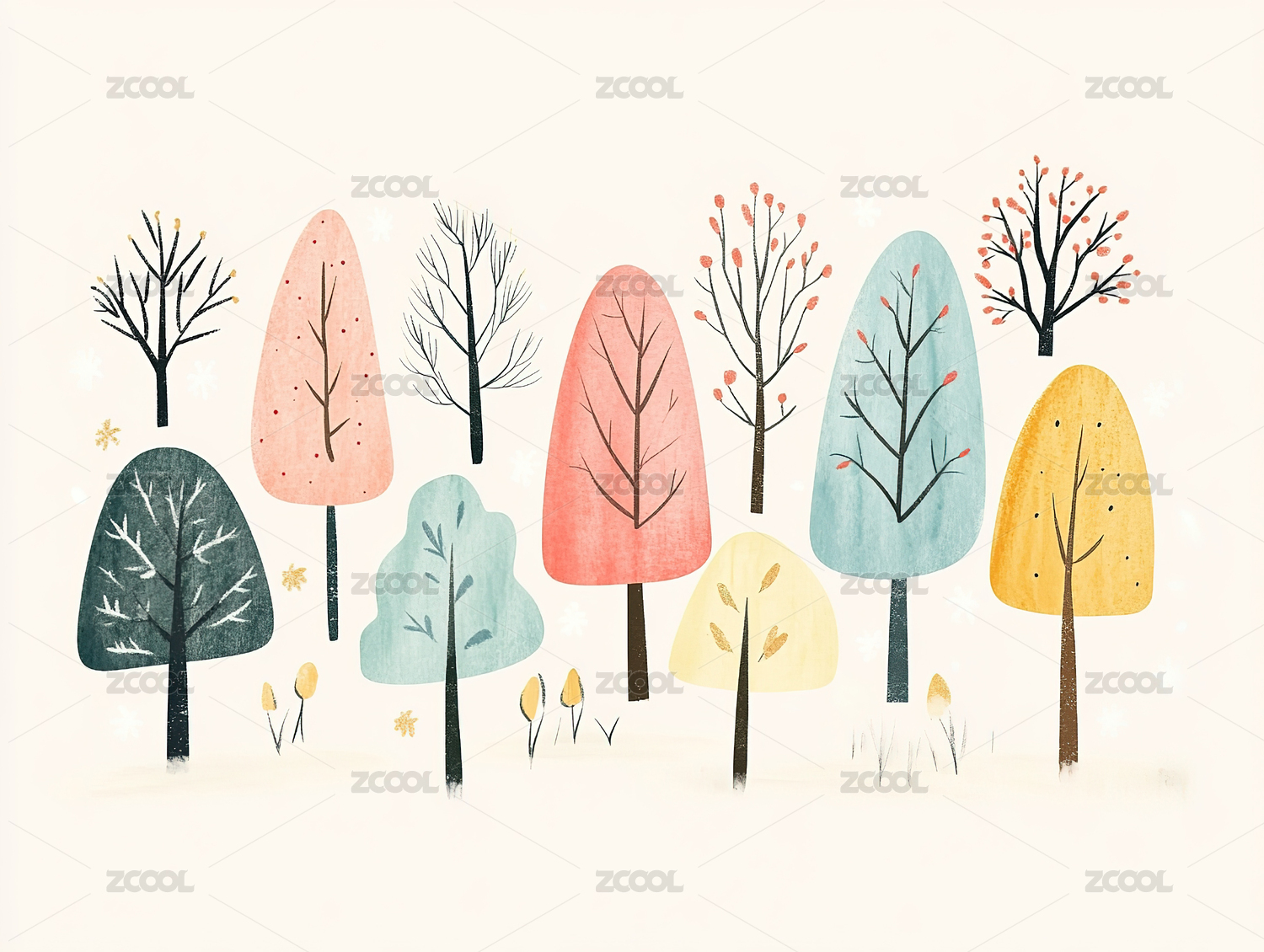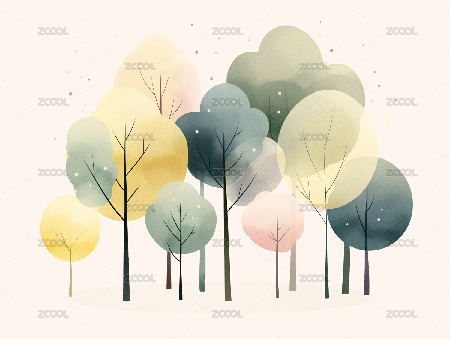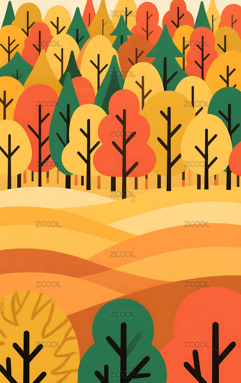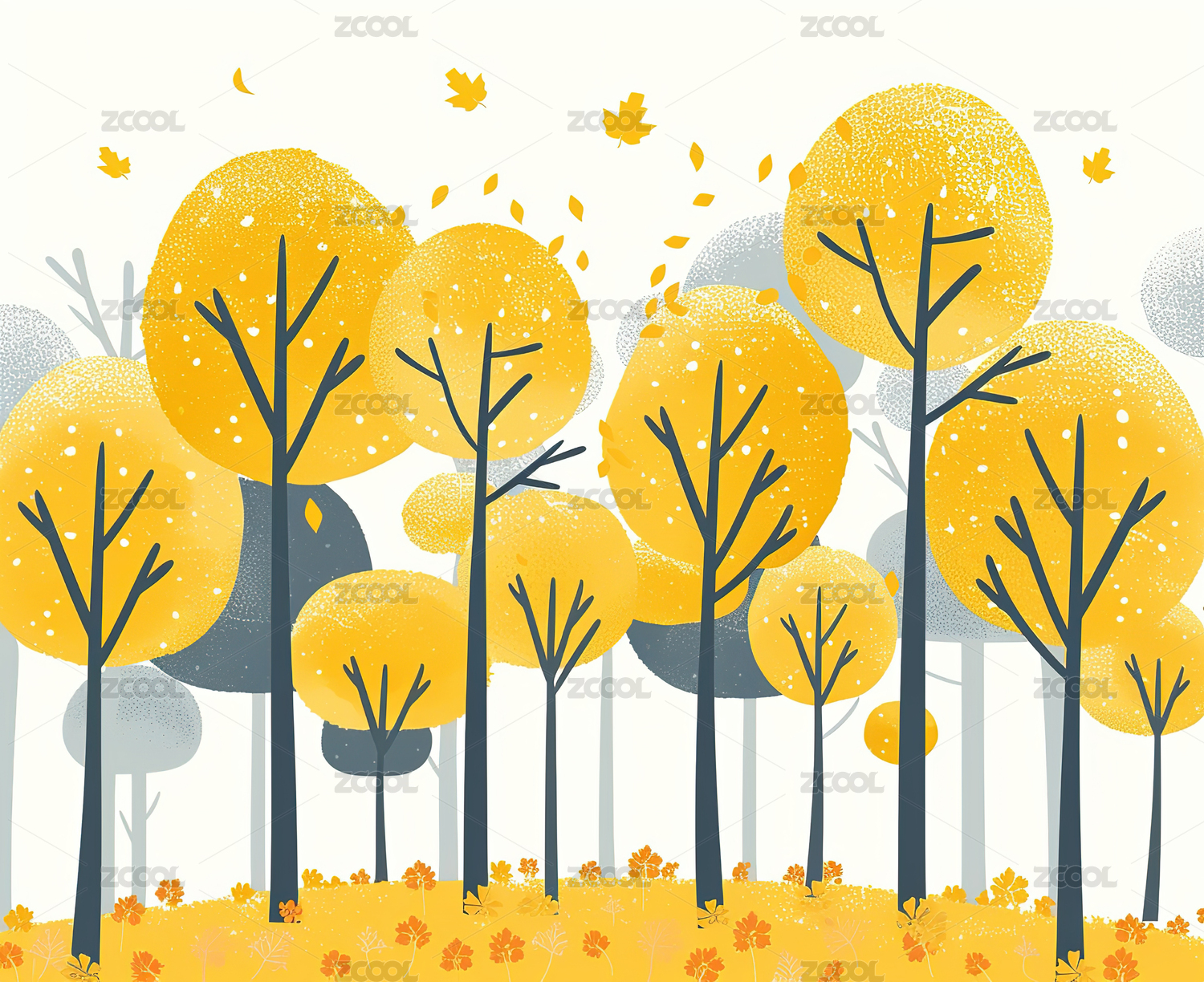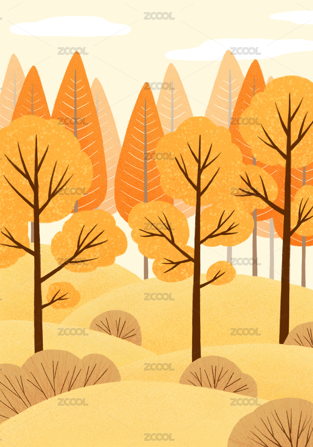 秋天,树林,森林,插画,插图,落叶,装饰画,秋季,风景,节气