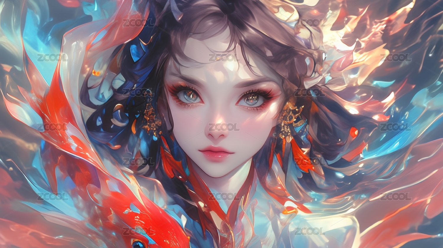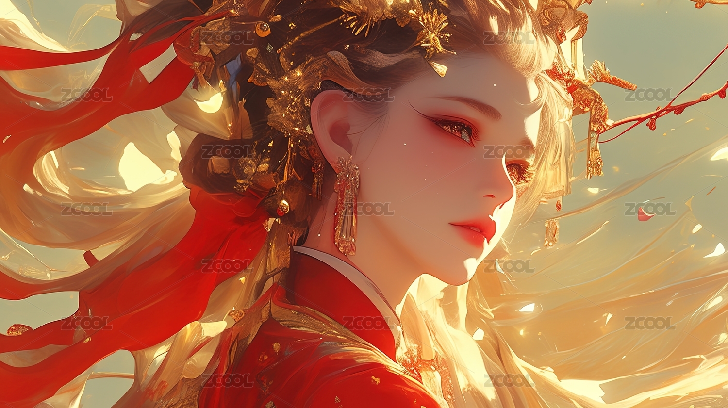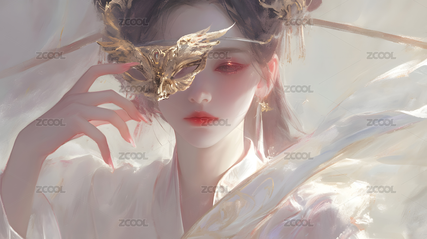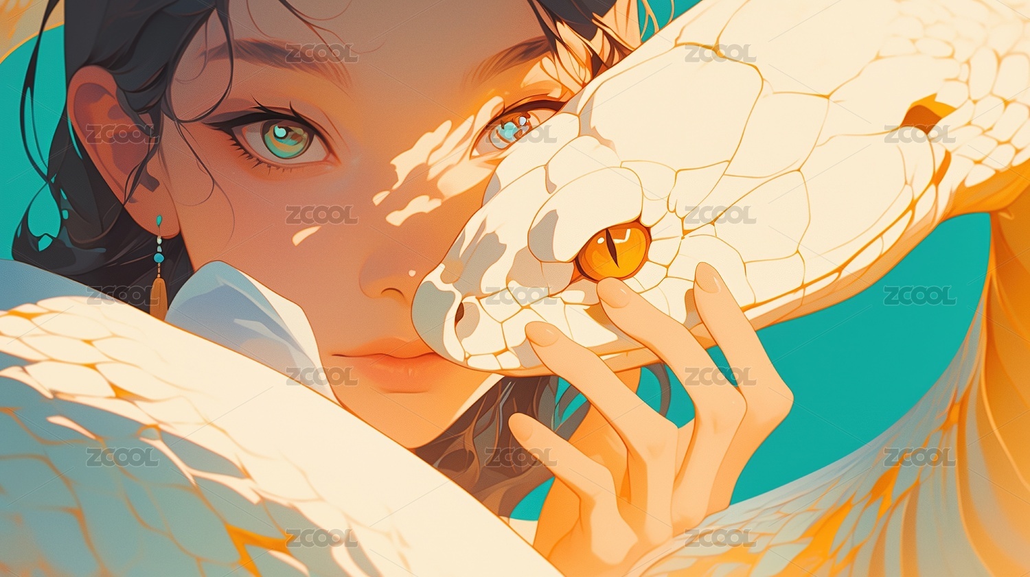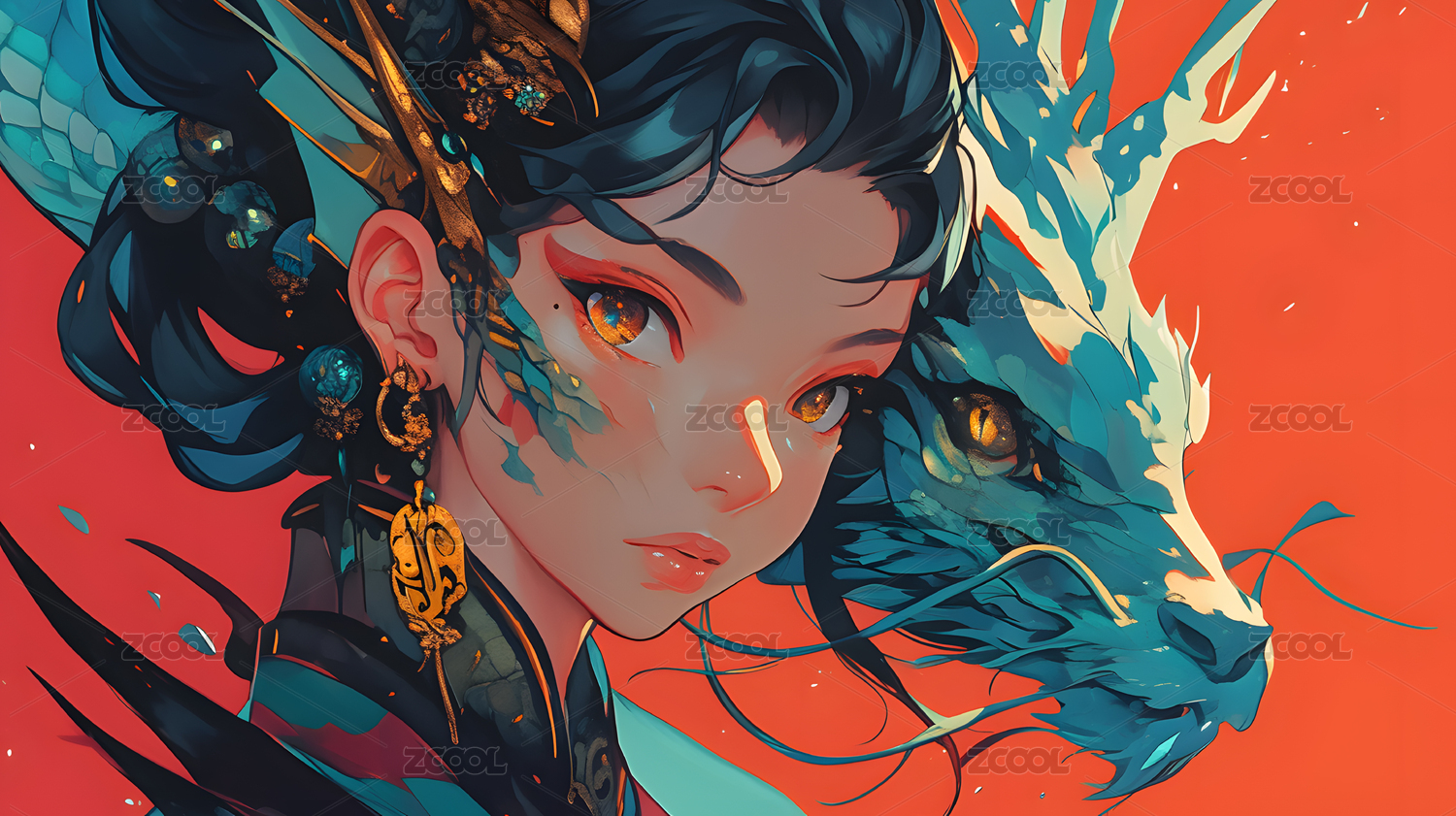 艺术,少女,金色,白色,唯美,梦幻,奇幻,金龙,相遇,光泽
