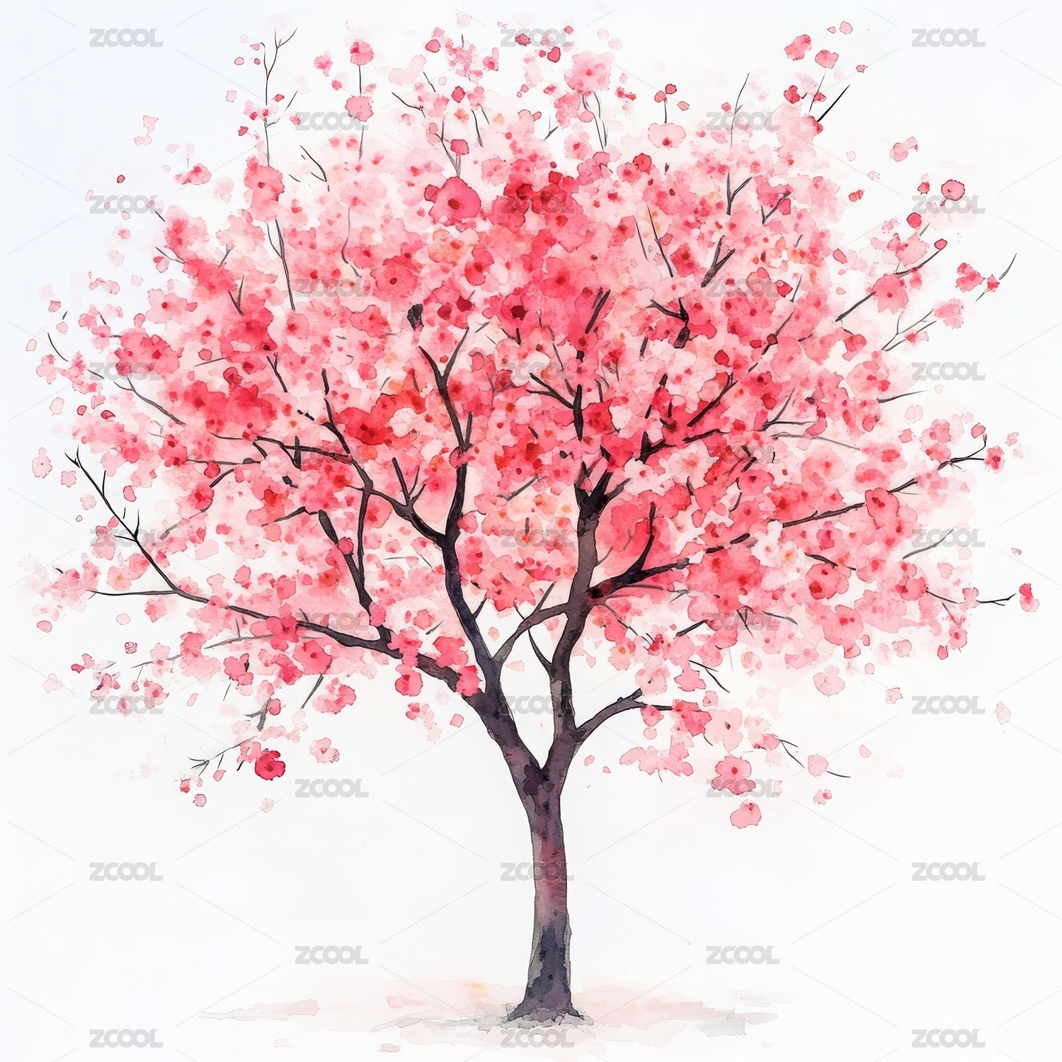 自然生长开花植物树木樱花梅花桃花粉色花朵