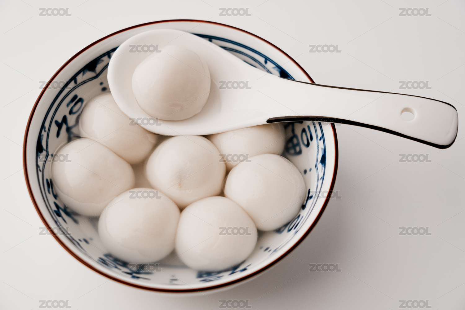 纯色背景里的一碗汤圆。