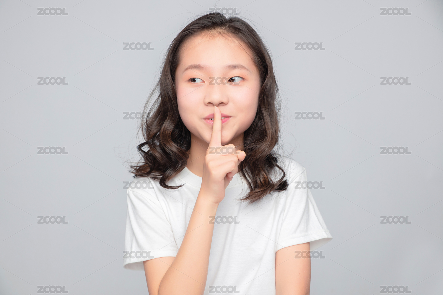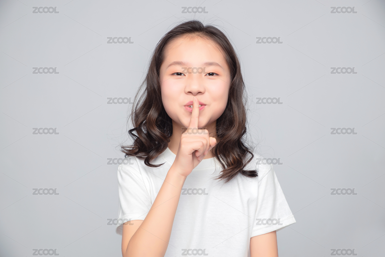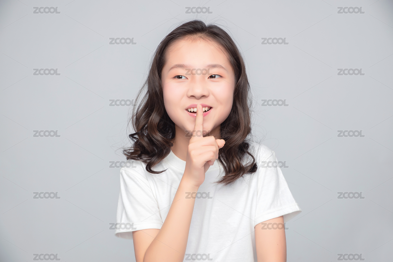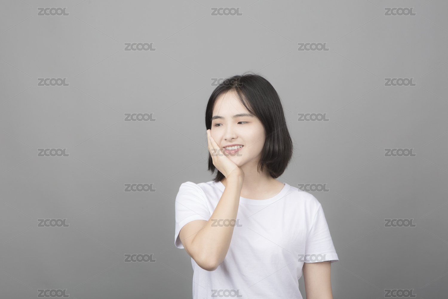无背景,学生,安静,表情,女生,短发,白T恤,可爱,青春,遮嘴巴