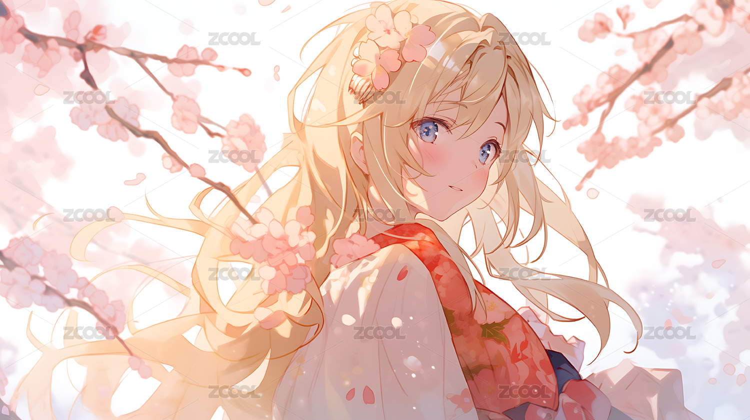 动漫,女孩,插画,唯美,温柔,少女,清新,水彩,绘画,蓝天
