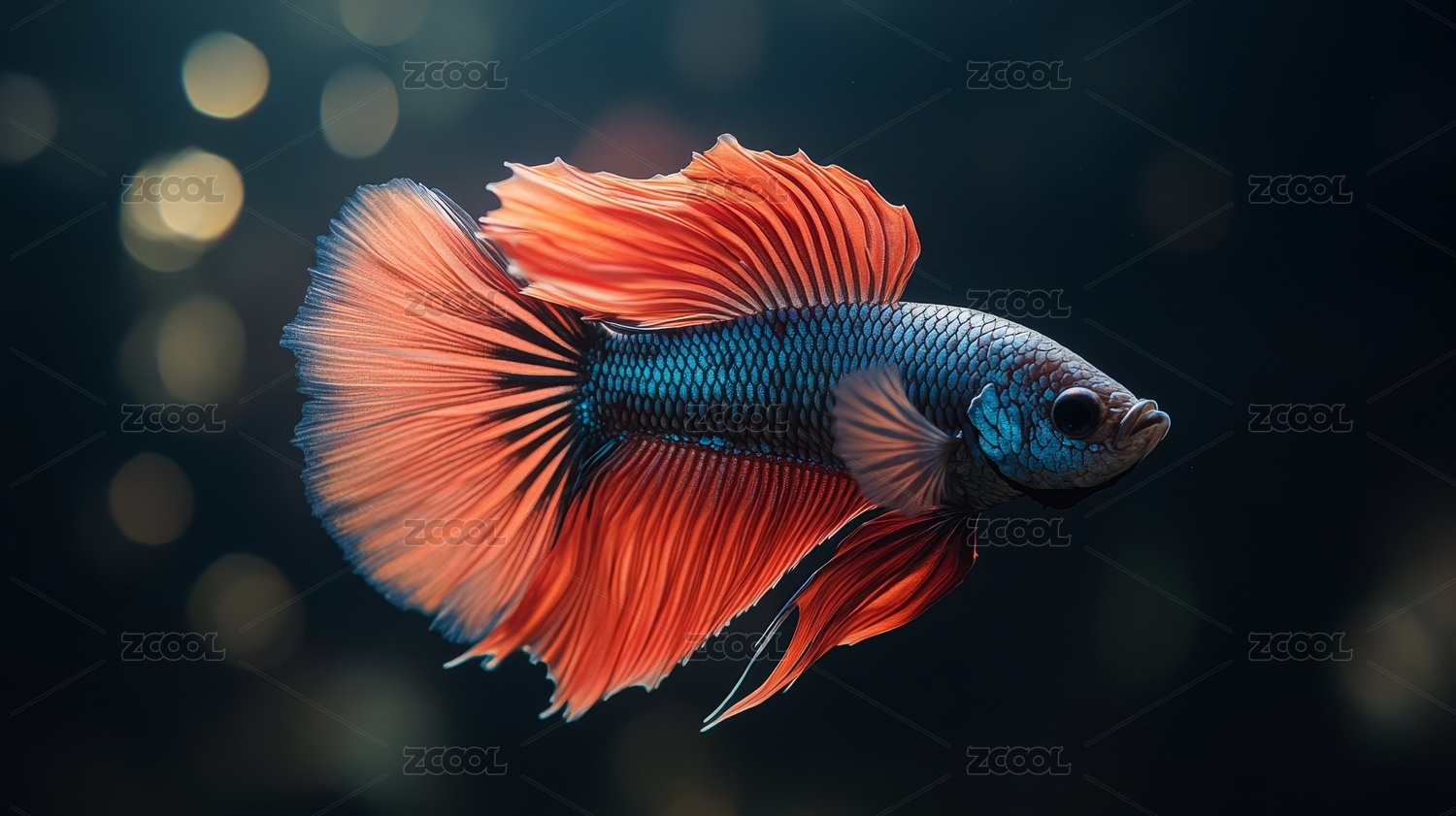 大尾巴,金鱼,黑背景,观赏鱼,美丽,孤立,隔离,游水,蓝色,尾巴