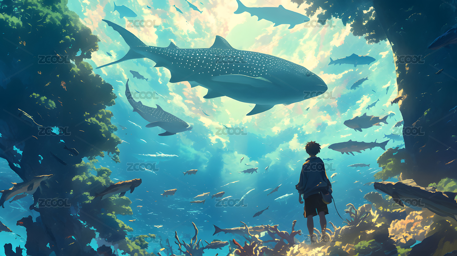 少年与鲸鲨共舞奇幻海底世界