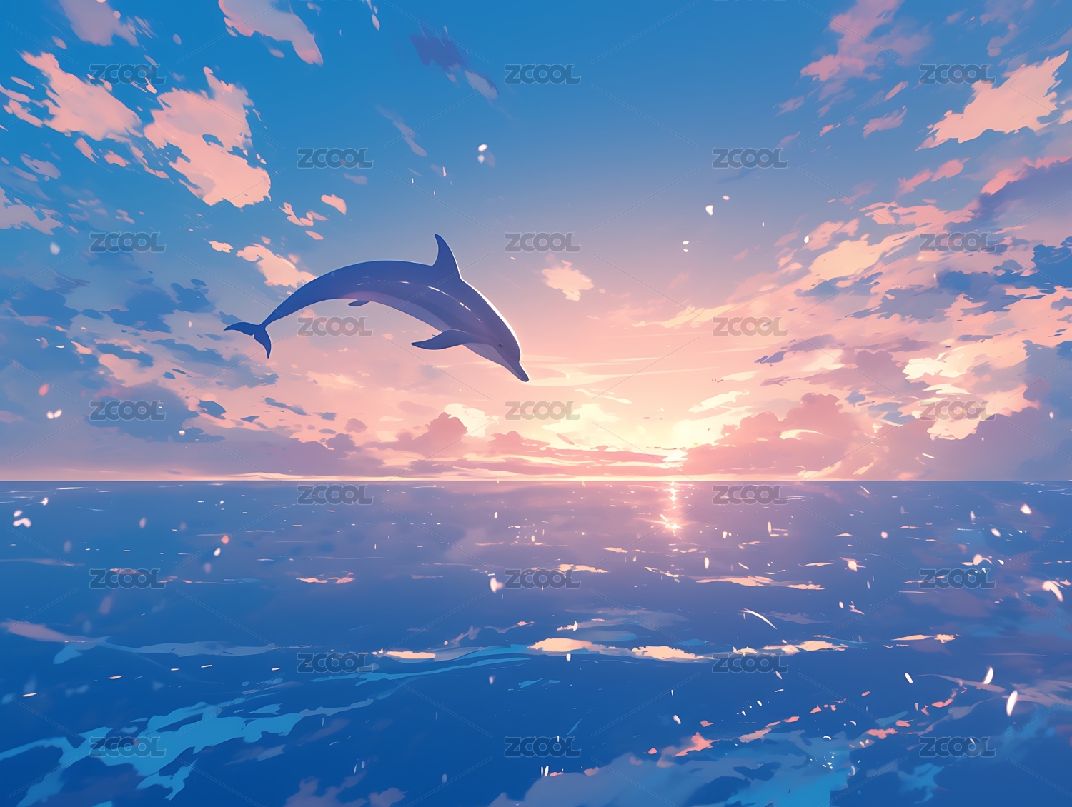 海上的海豚治愈系新海诚插画
