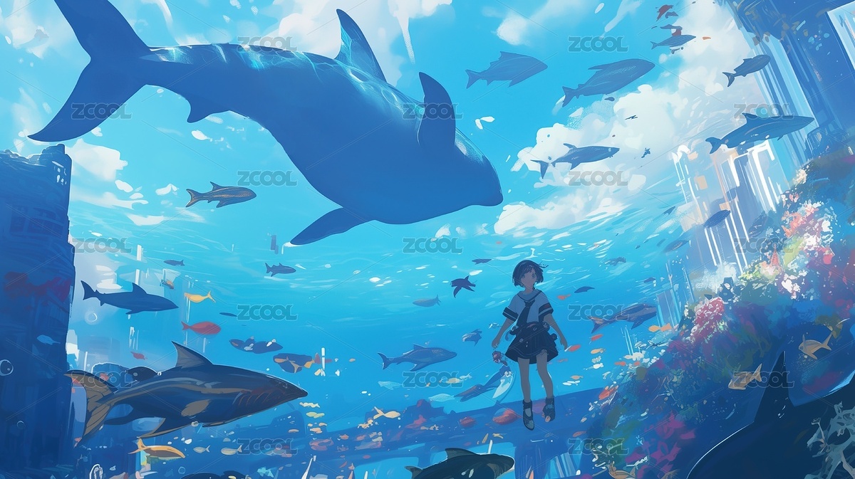 女孩与鲸鱼梦幻海底世界