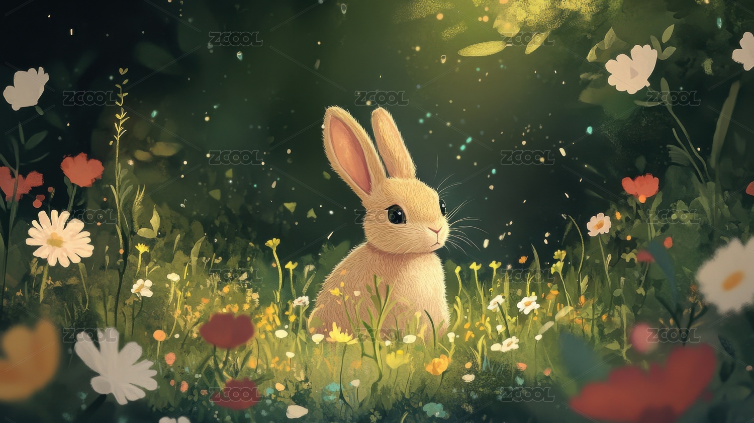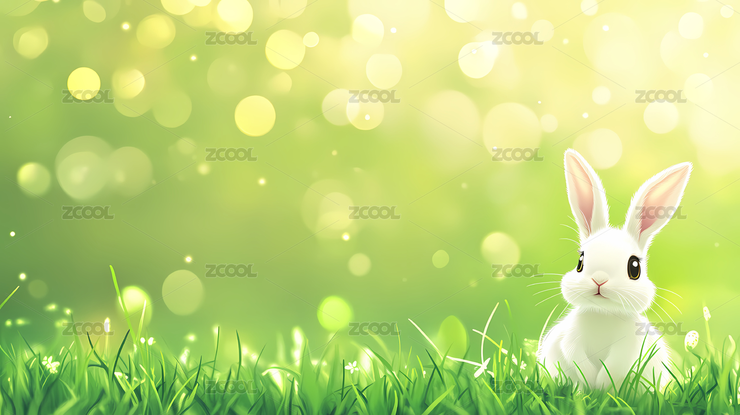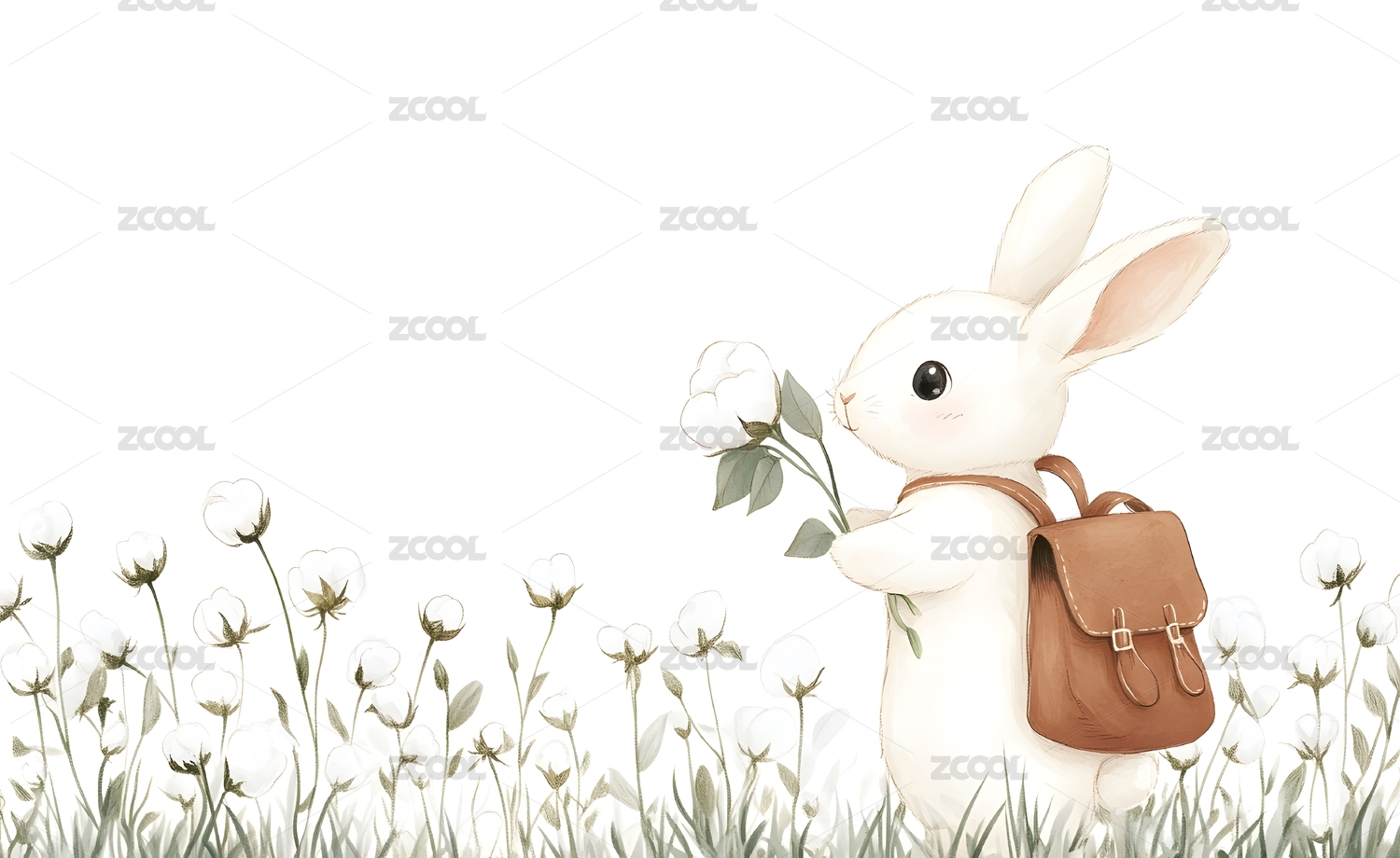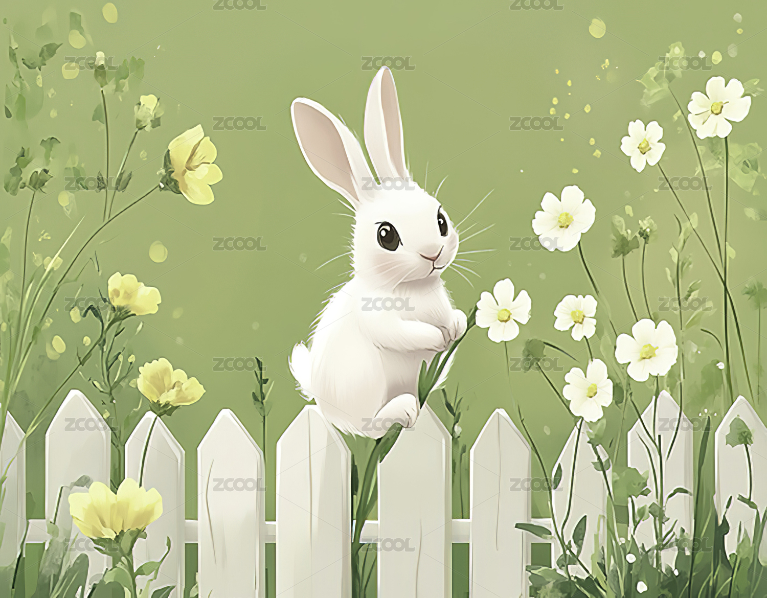 白天白底草原卧姿野兔白兔特写插画绘画手绘