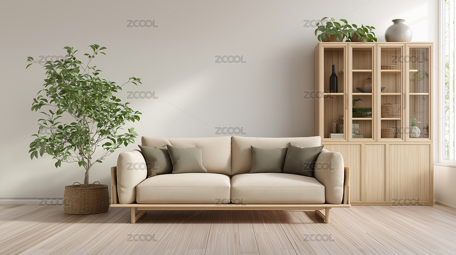 简约客厅沙发绿植摆件温馨场景