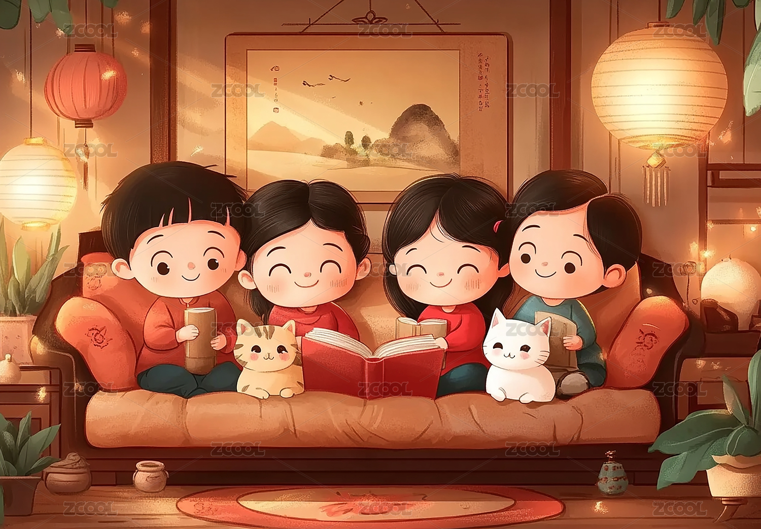 看书,阅读,春节,新年,新春,儿童,5岁,可爱,新中式,现代中式