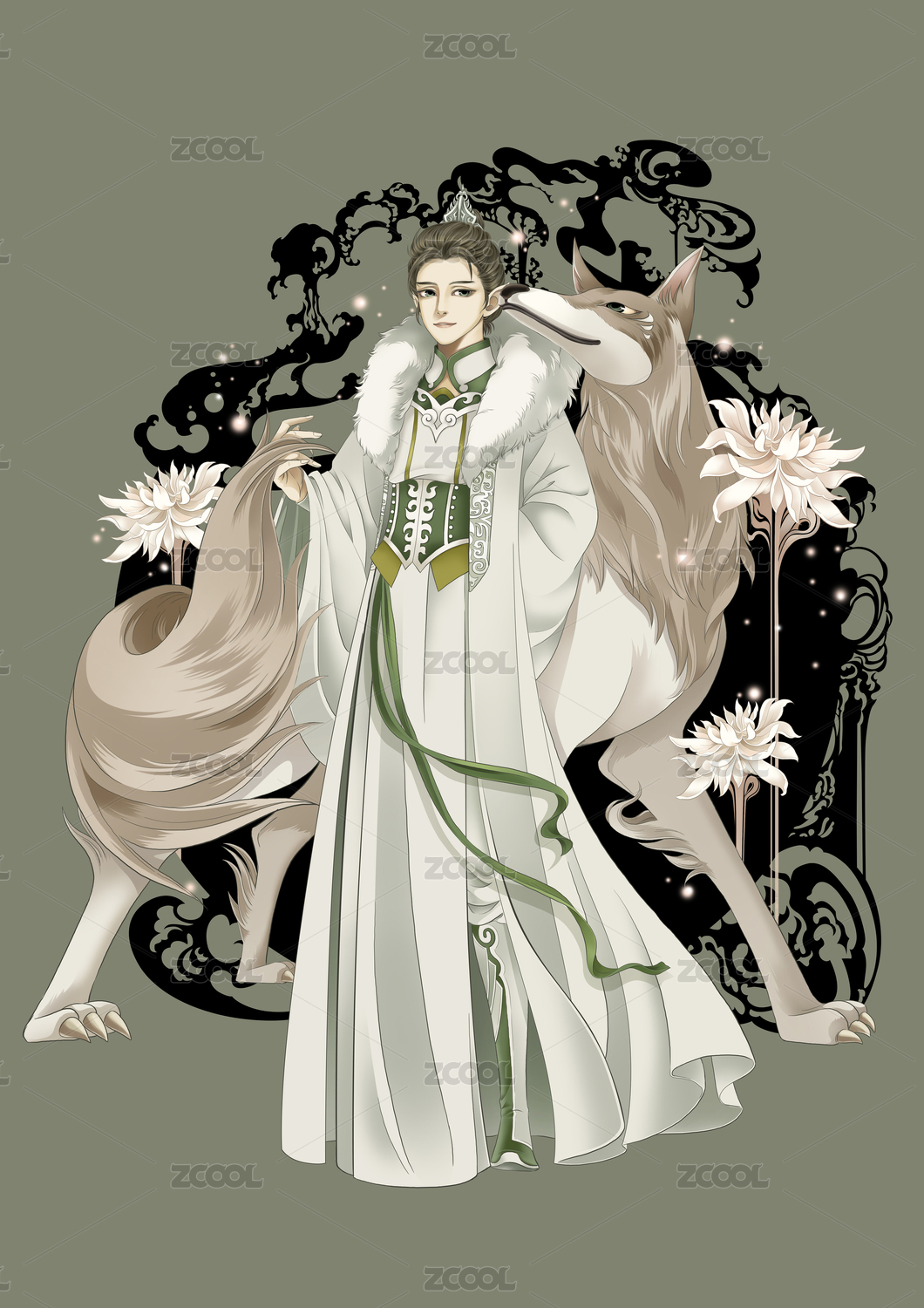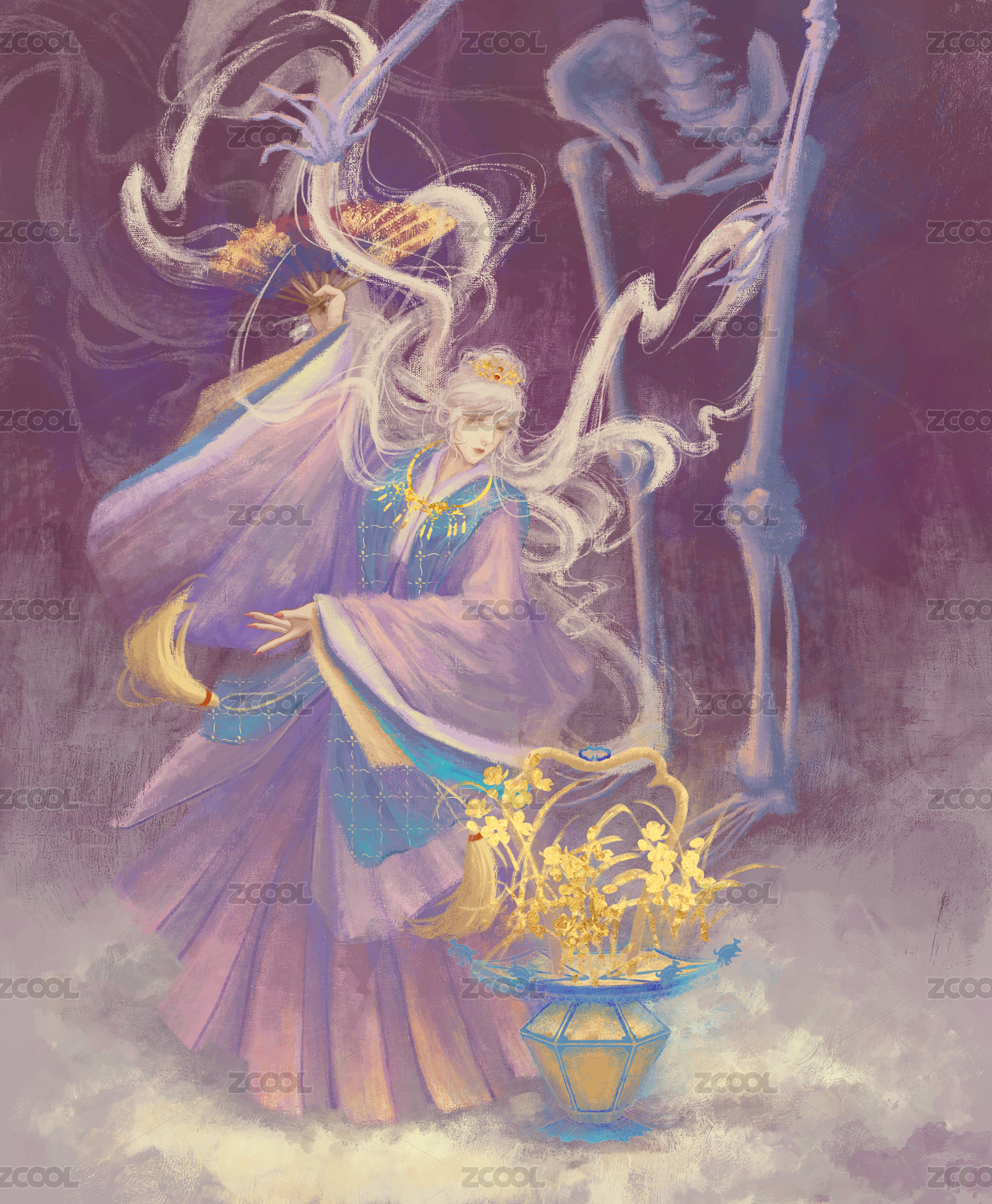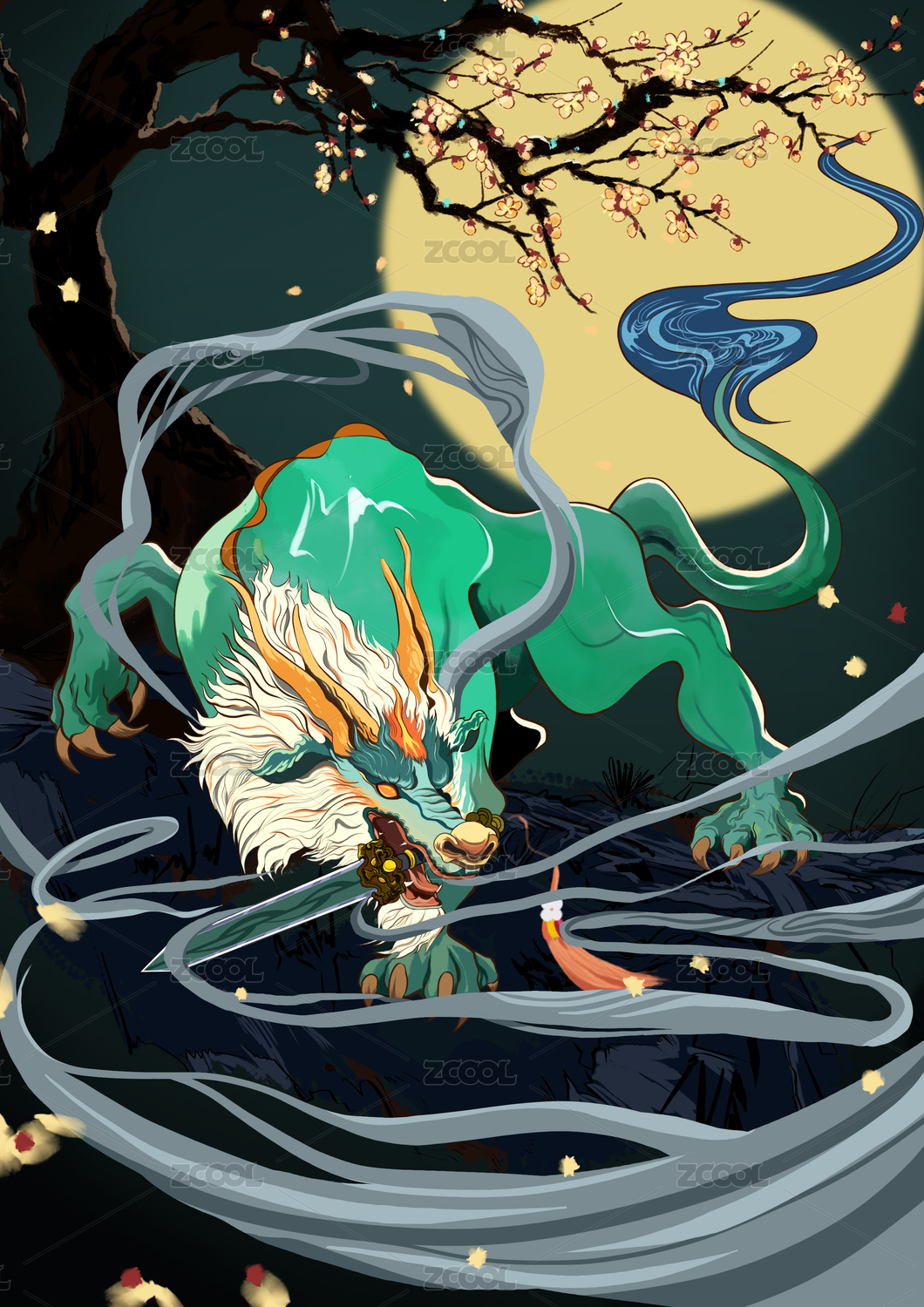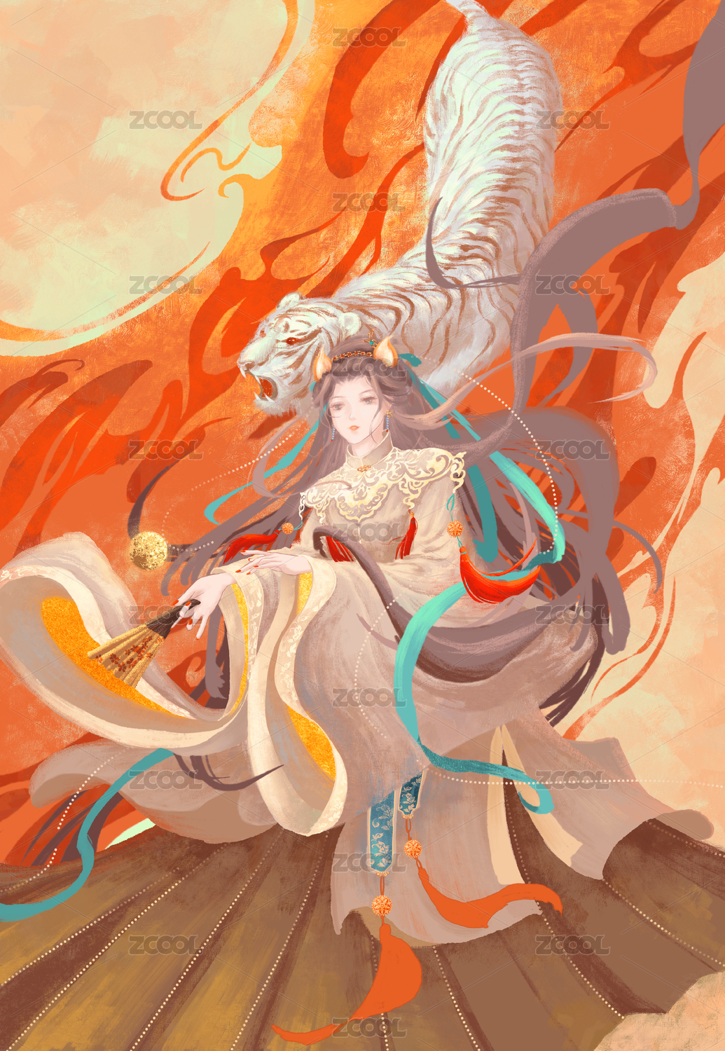 竖版国风传统美女梅花神红色斗篷唯美插画