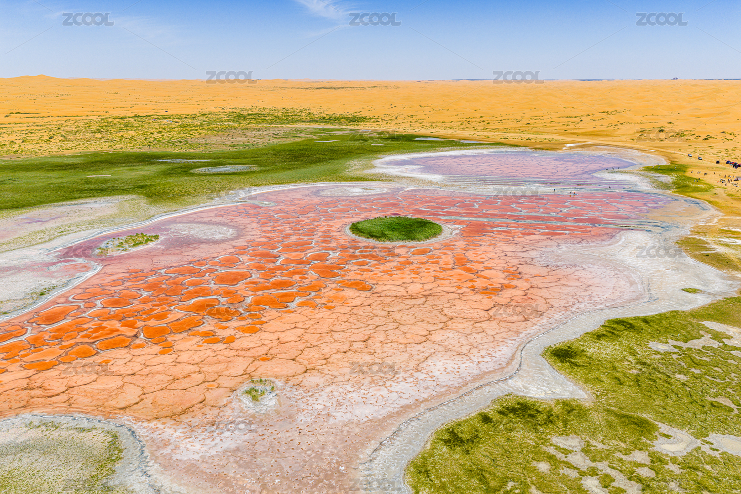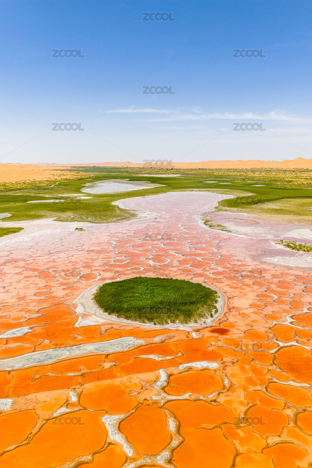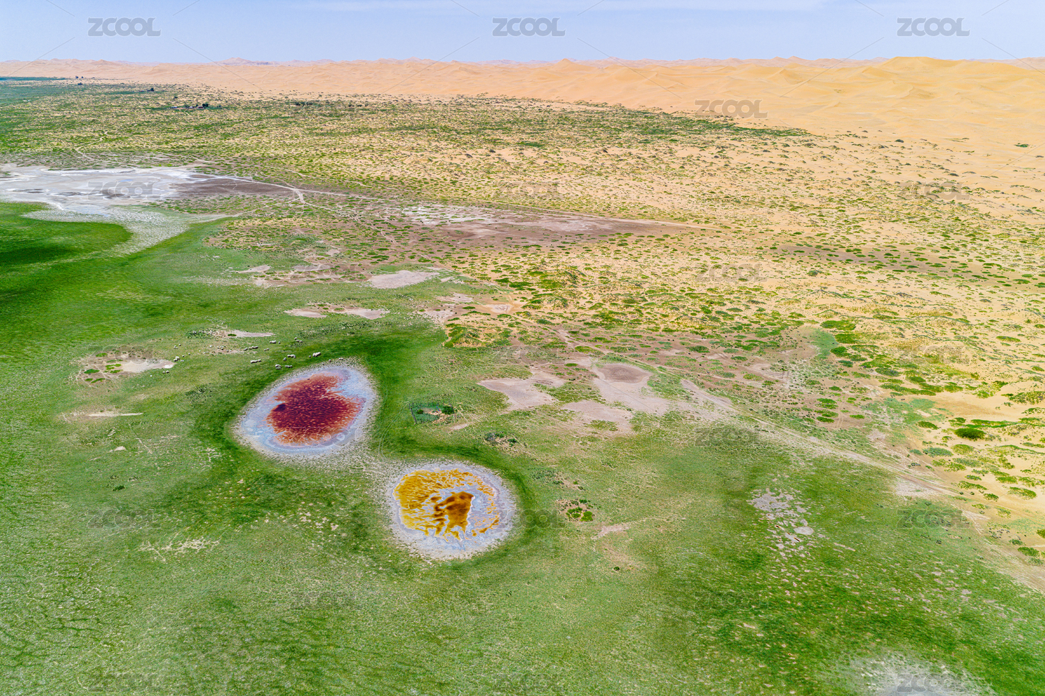 内蒙古阿拉善腾格里沙漠多彩的湖泊