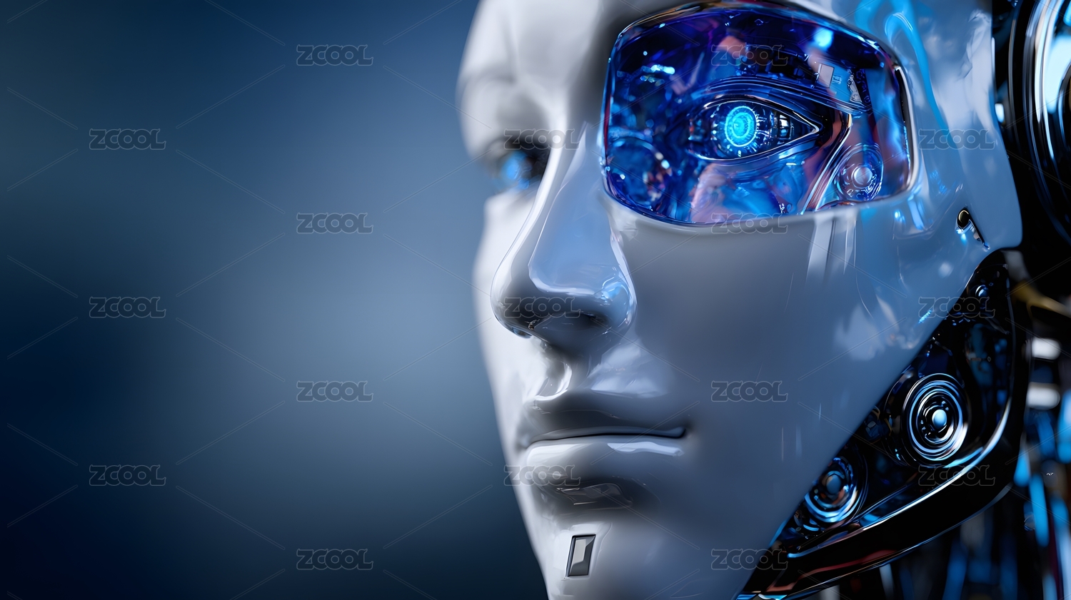 未来科技感机械人面部特写