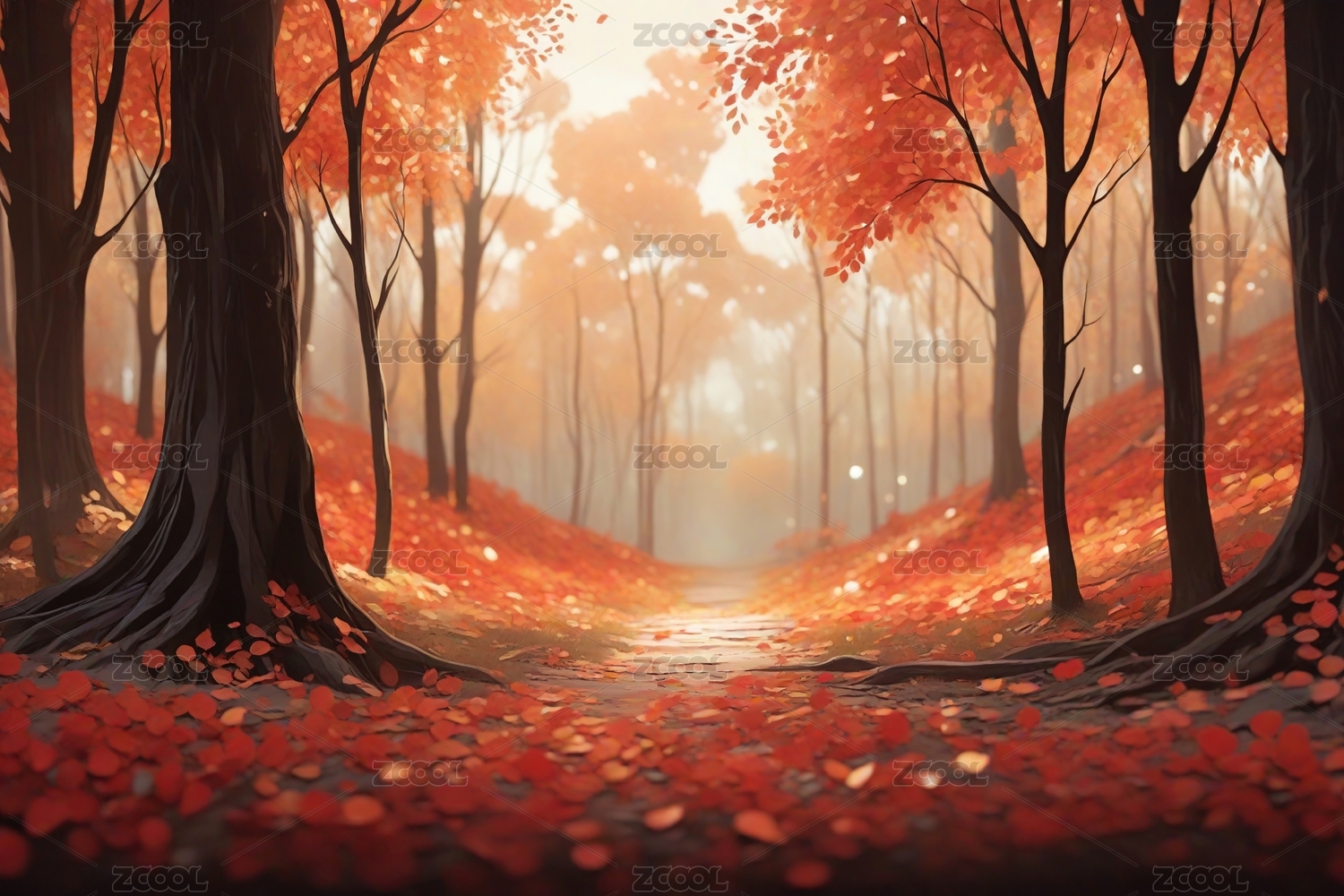 秋日森林红叶小径