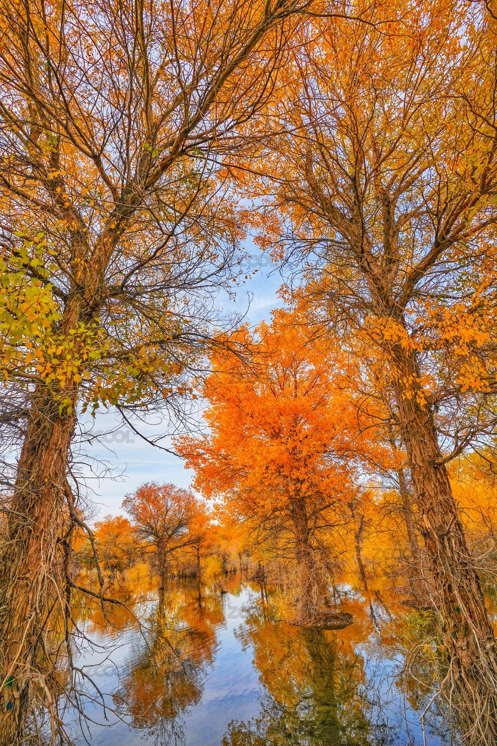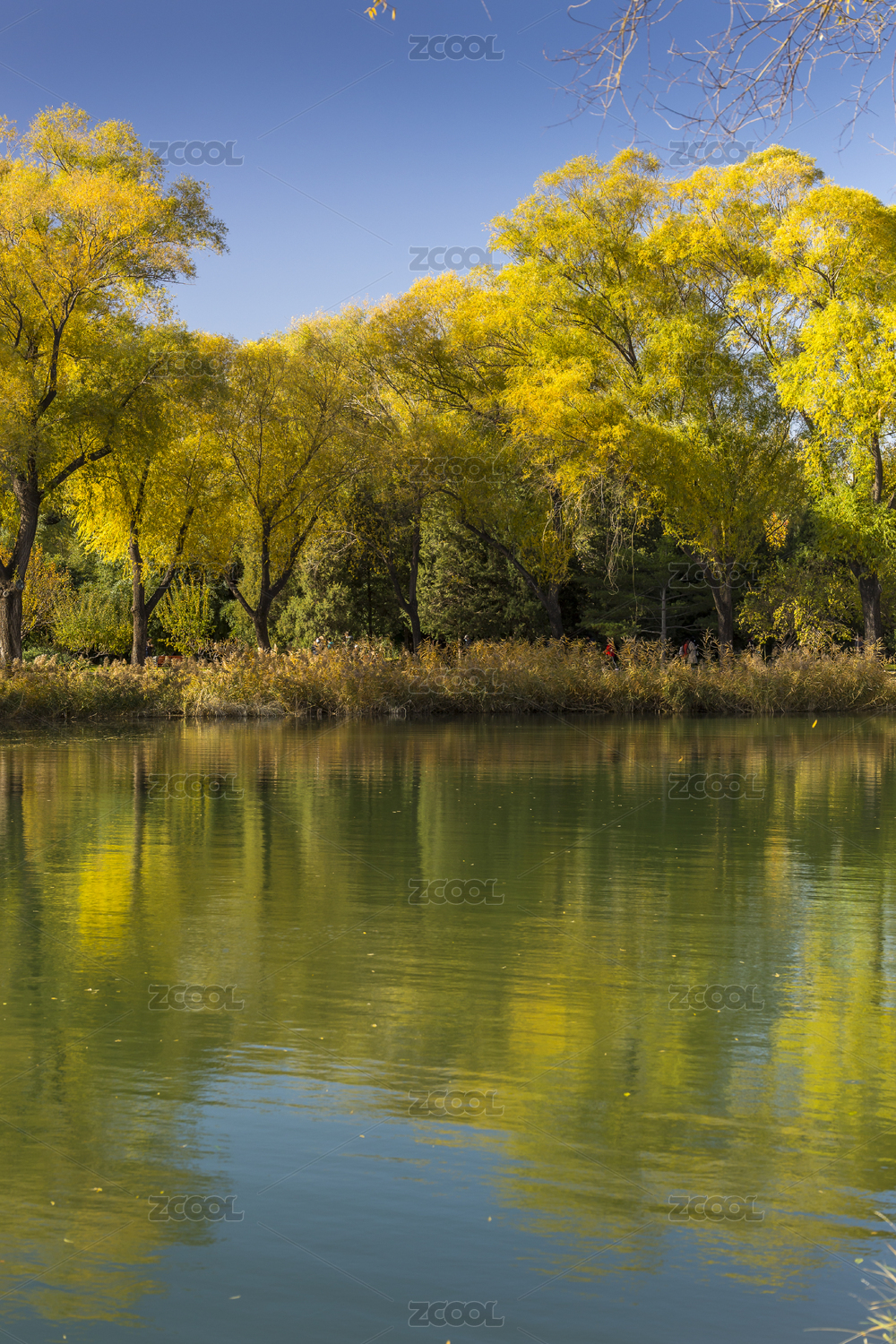 甘肃酒泉金塔胡杨林金波湖秋色倒影