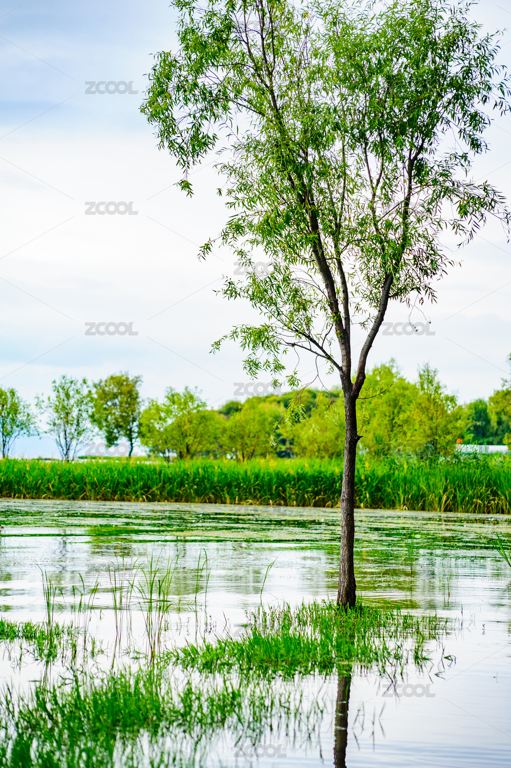 中国云南昆明滇池海埂大坝附近船房河入湖口草海湿地
