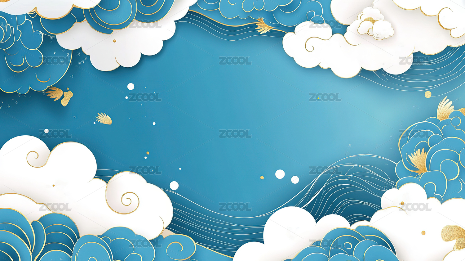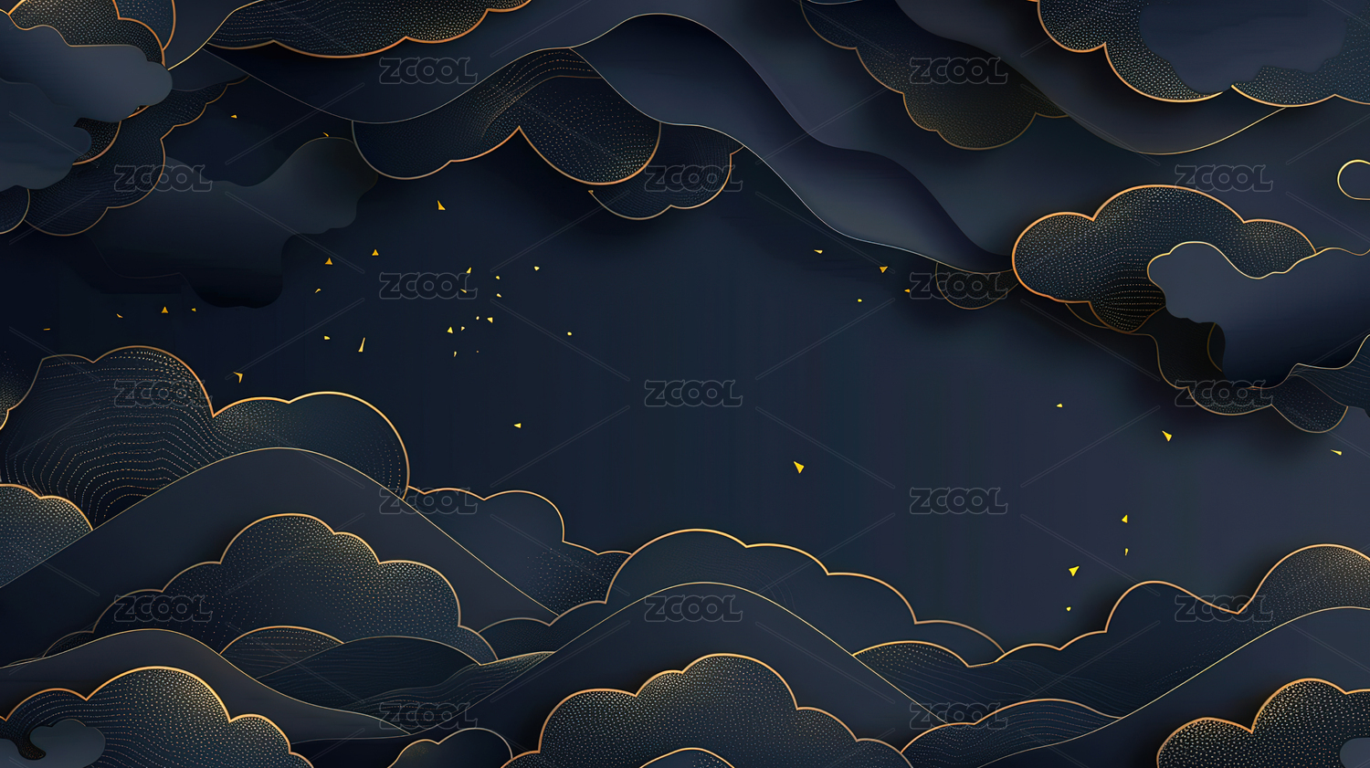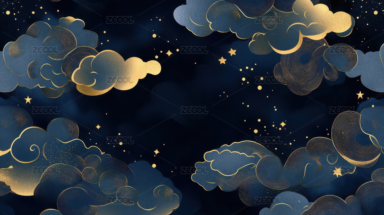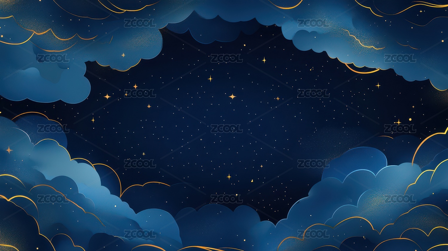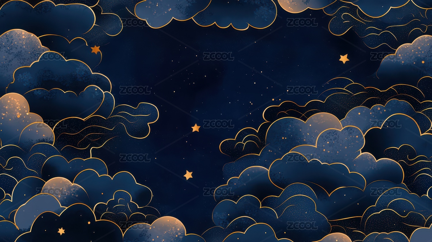 夜空中的星星、月亮和云朵,可爱漫画背景