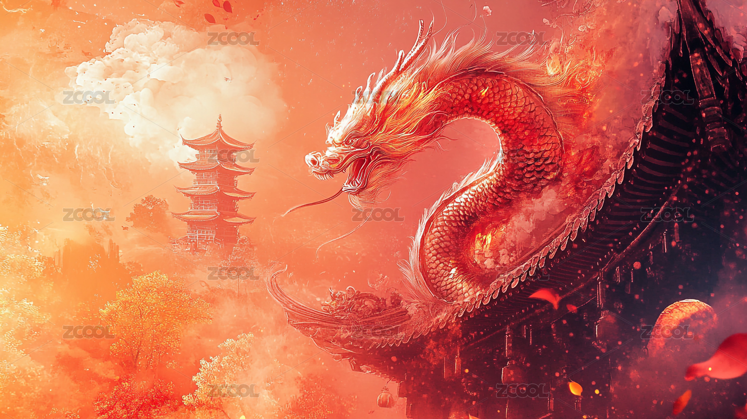 中国风巨龙场景插画