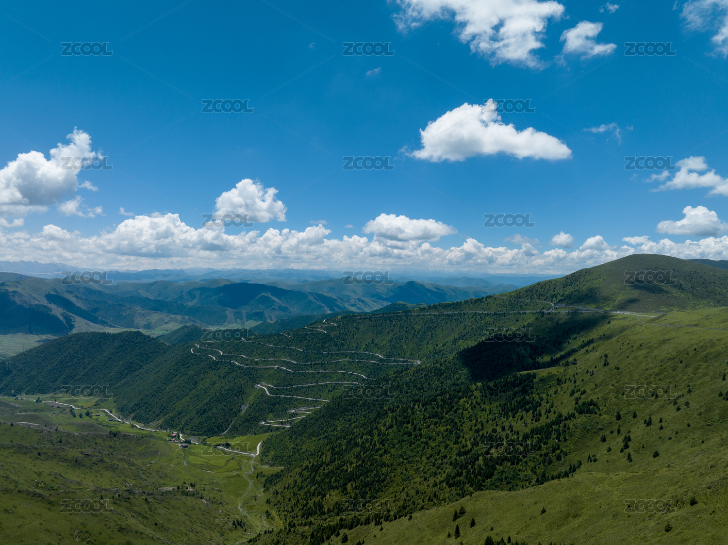 甘南秘境洛克之路连绵绿色山脉蓝天白云