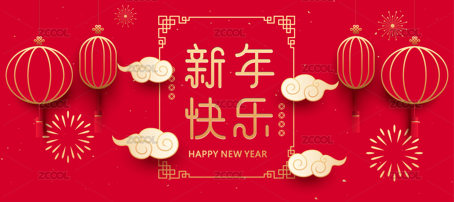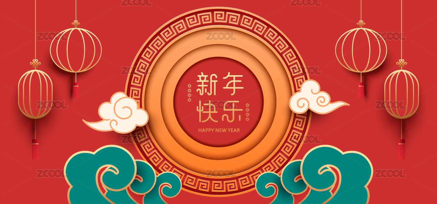 中国传统新年图形设计,悬挂的灯笼和祥云