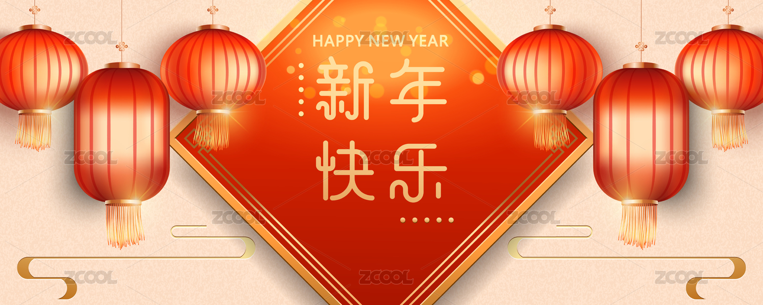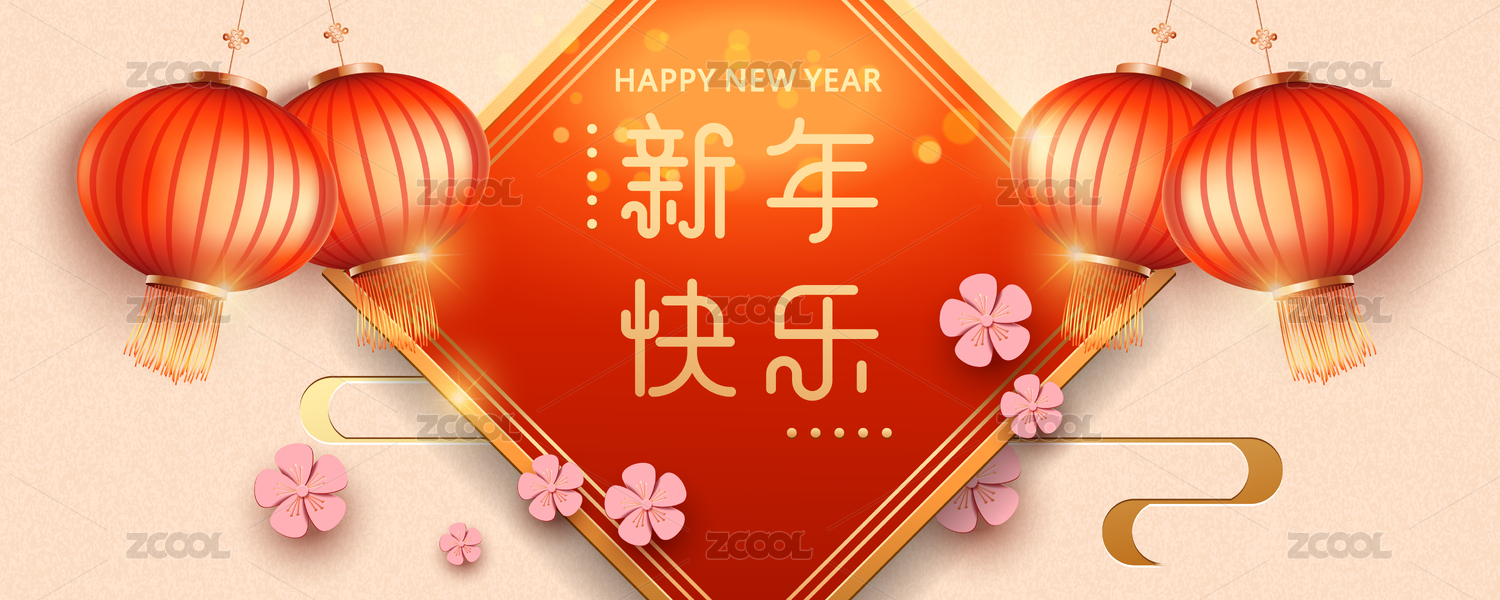 农历新年矢量背景图或banner,红灯笼和新春快乐春联