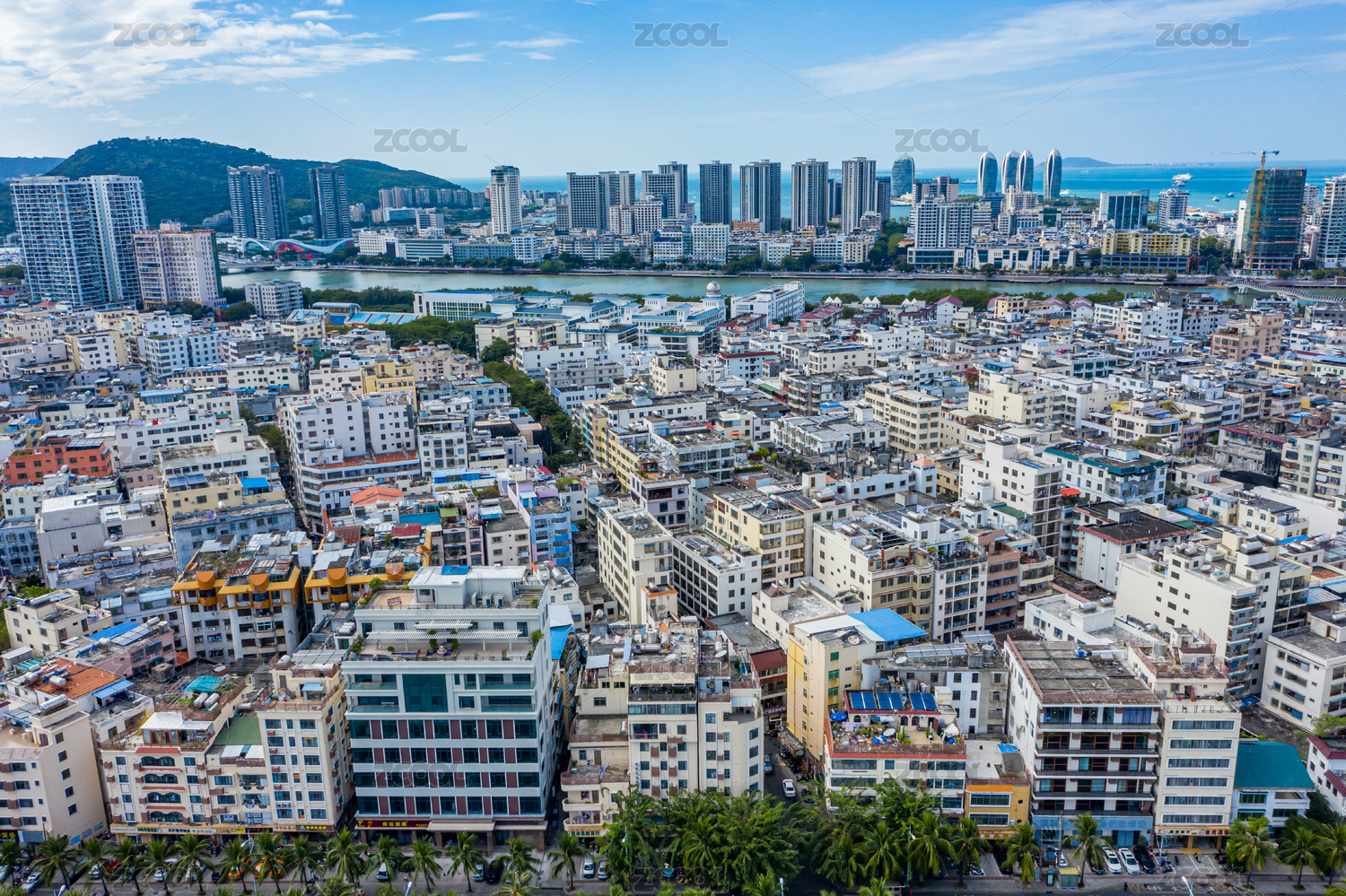航拍海南三亚港门村都市村庄城中村自建房屋