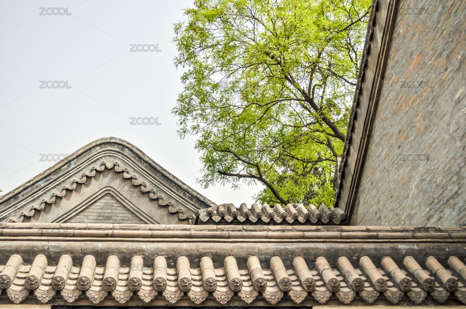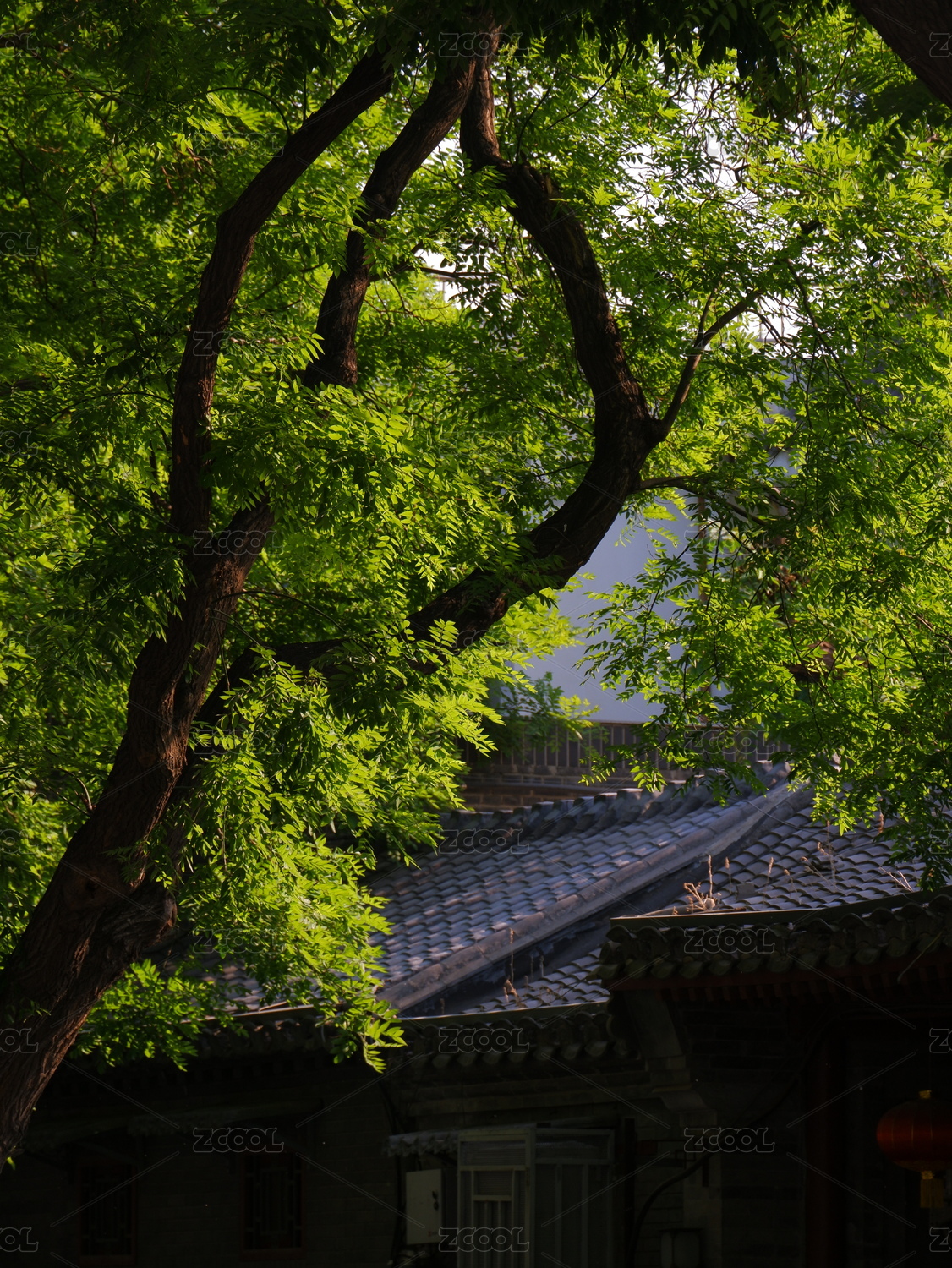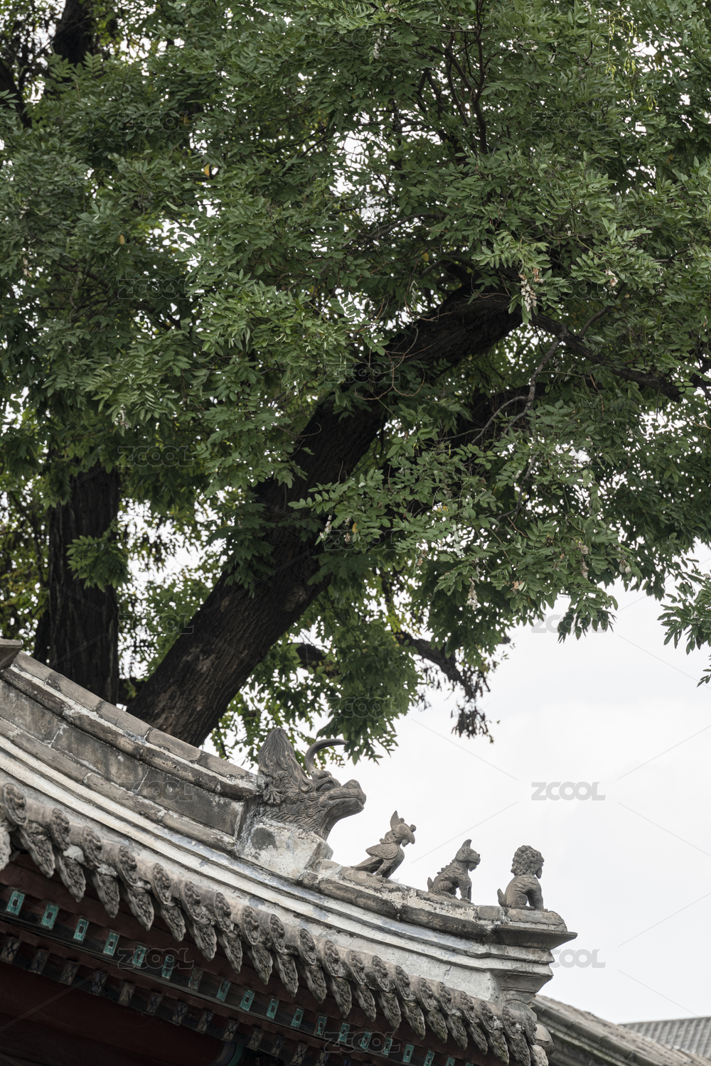 中国北京雍和宫的红色宫墙和绿色琉璃瓦