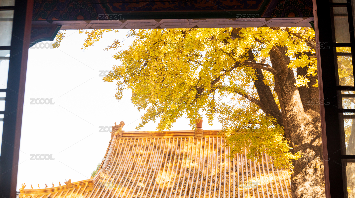 山东济南淌豆寺秋天黄色千年银杏树叶子金黄