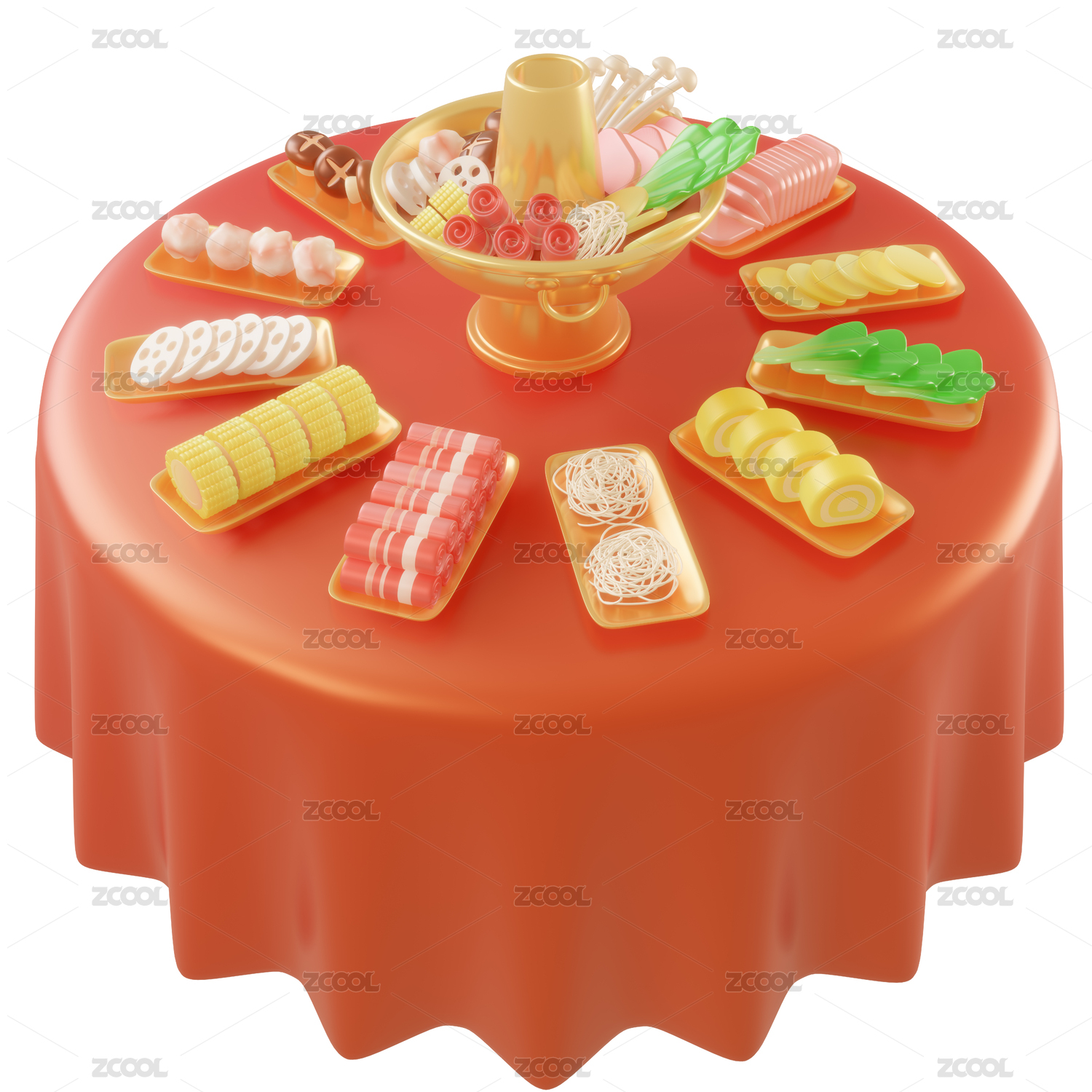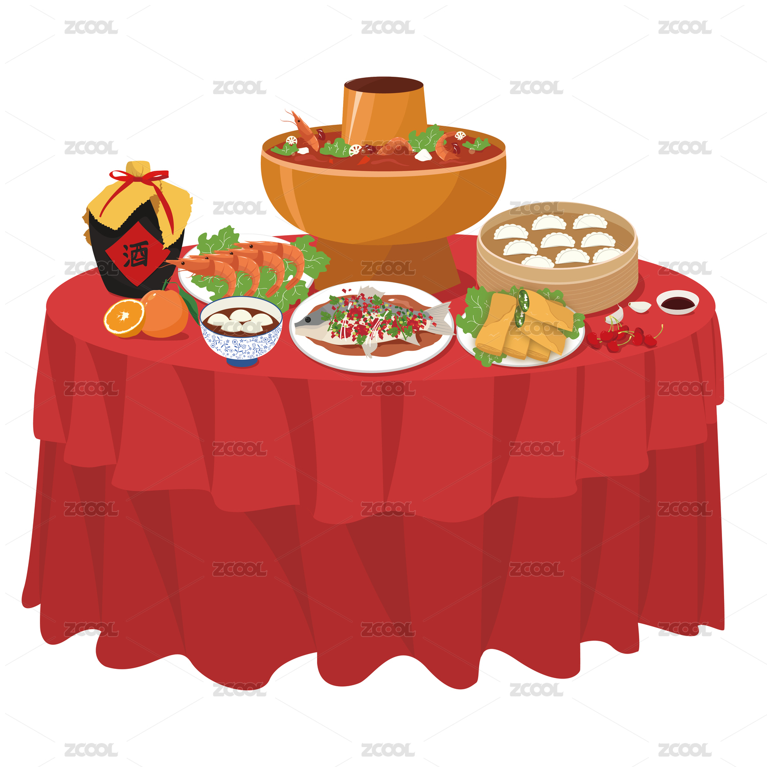 年夜饭团圆饭大年三十美食火锅菜肴矢量插画