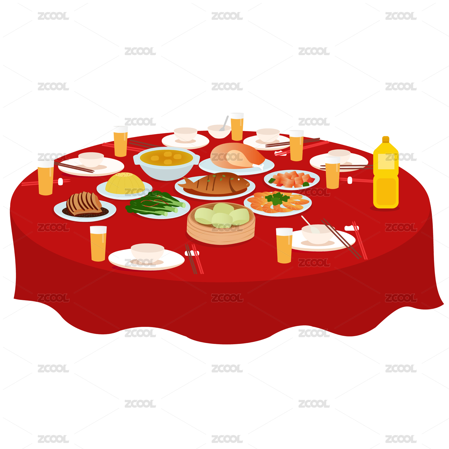 年夜饭团圆饭节日家庭聚餐美食火锅菜肴矢量
