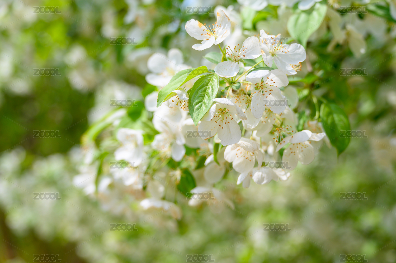 春天枝头绽放的淡雅白色海棠花繁花似雪