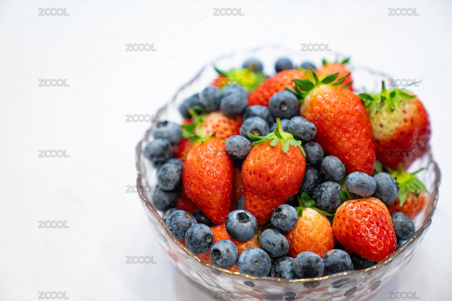 玻璃碗中的草莓与蓝莓