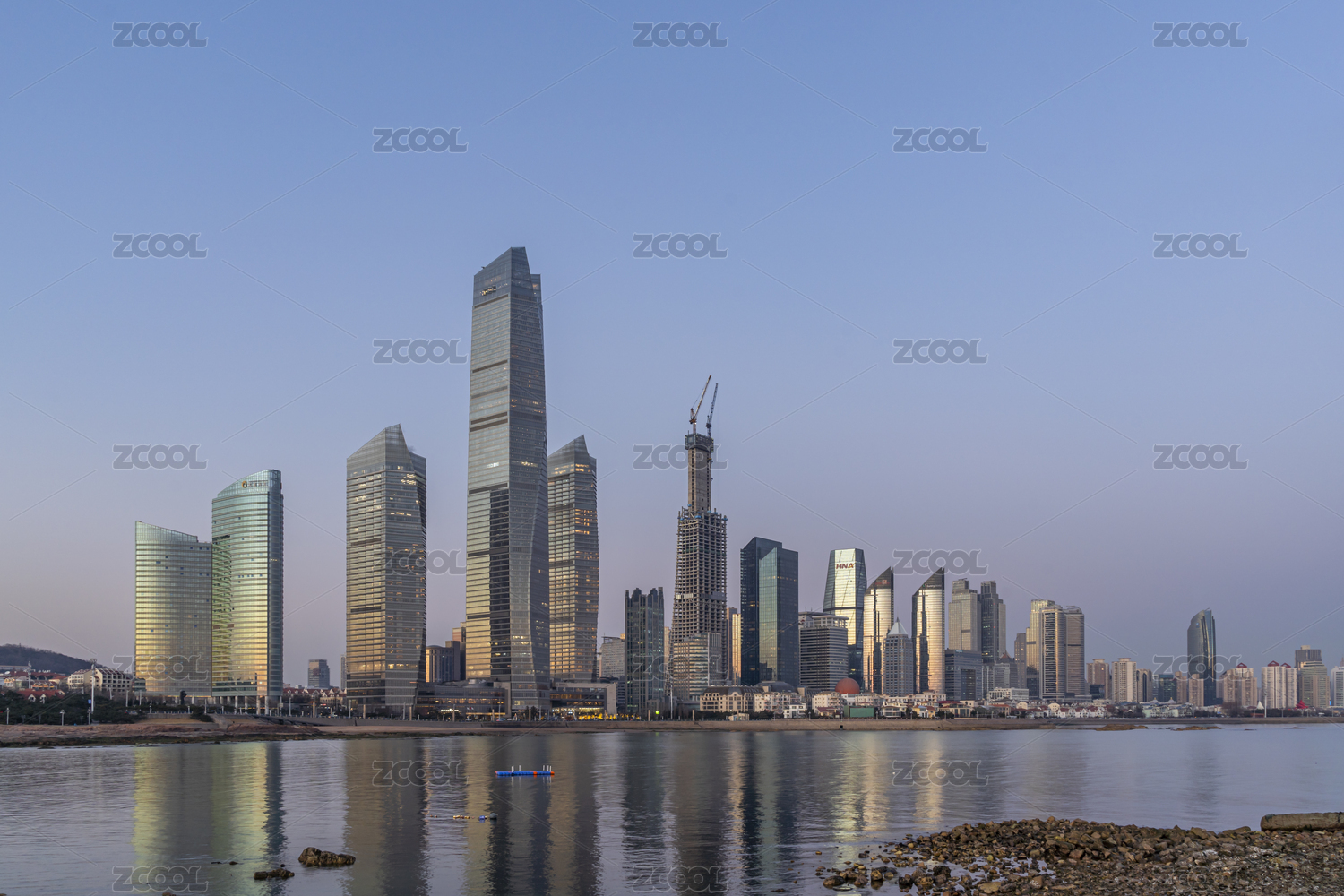 中国山东青岛海天中心大厦海滨城市风光