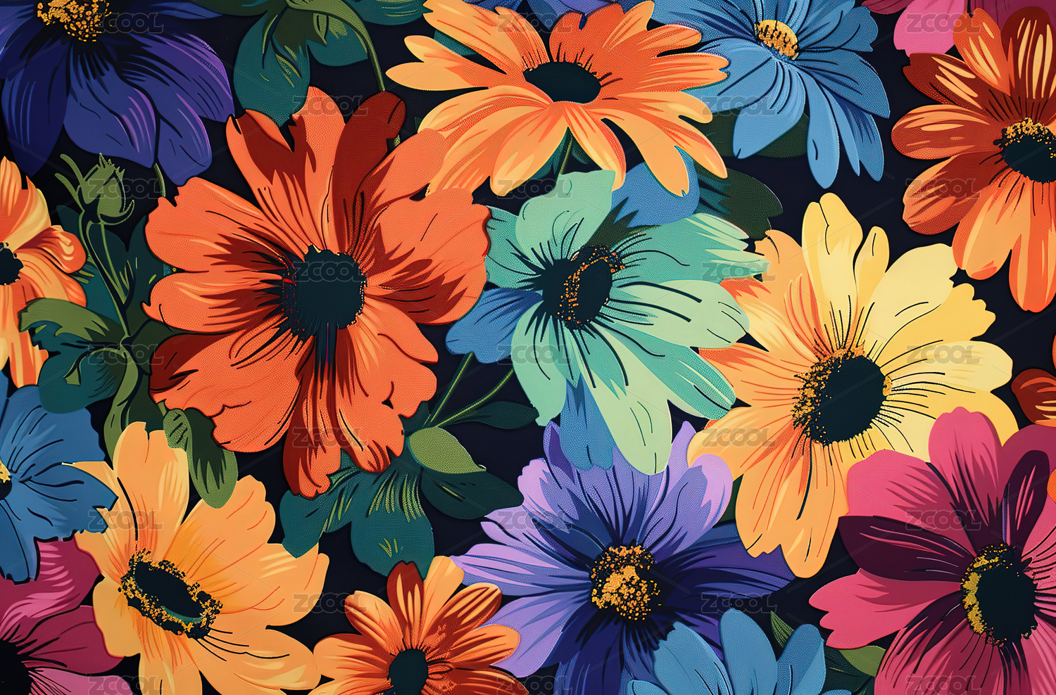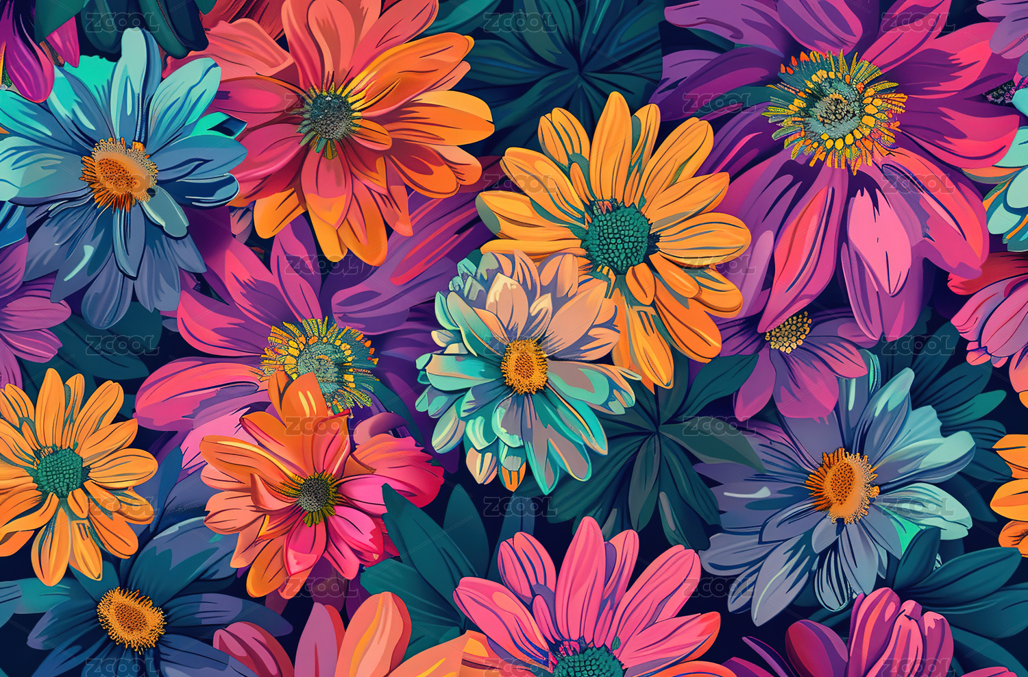 鲜艳的色彩抽象油画花朵艺术感装饰背景