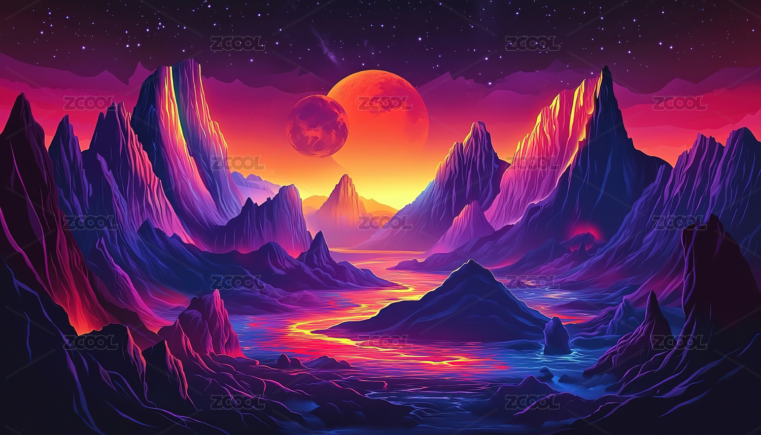 霓虹日出艺术感质感厚涂笔触抽象装饰画背景