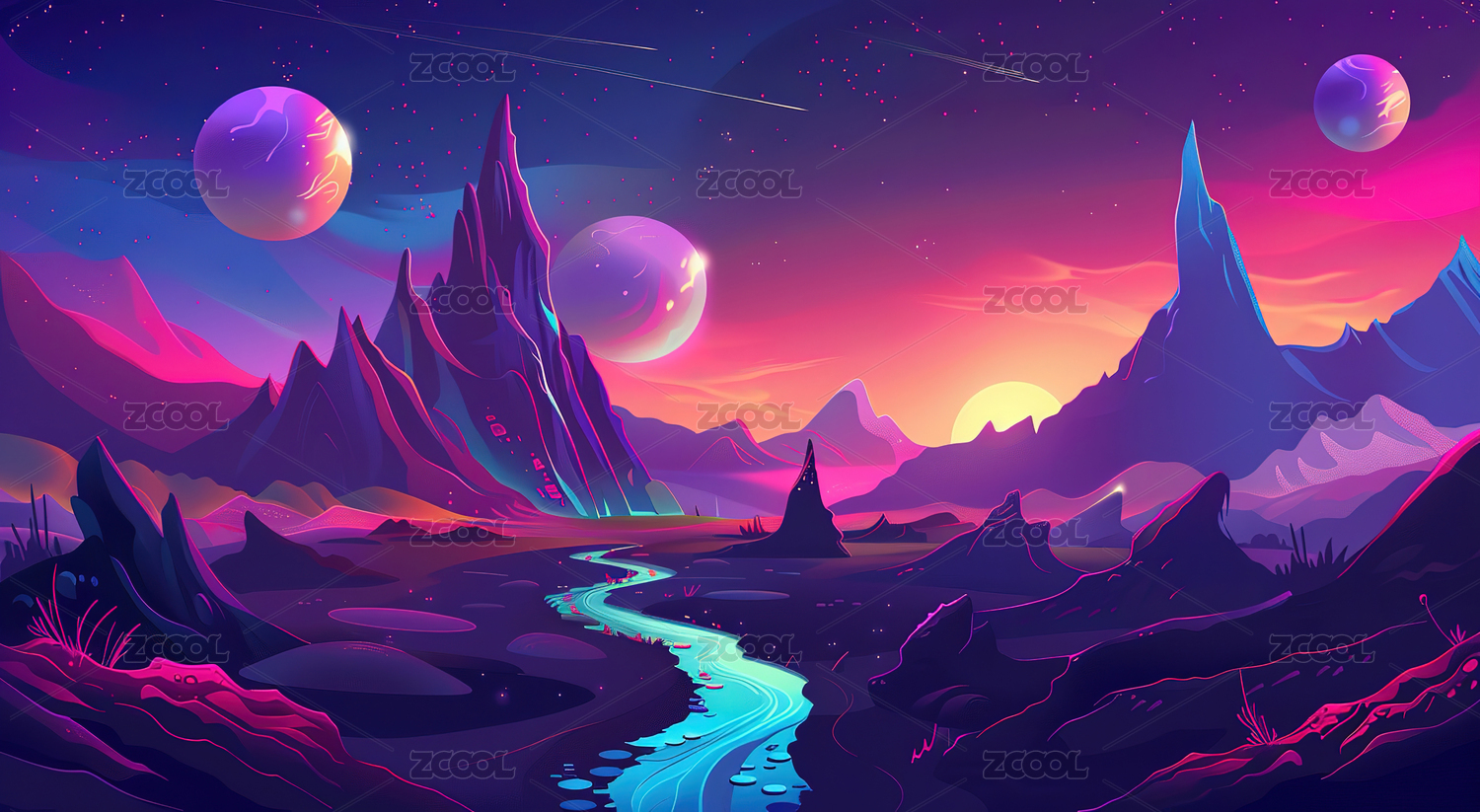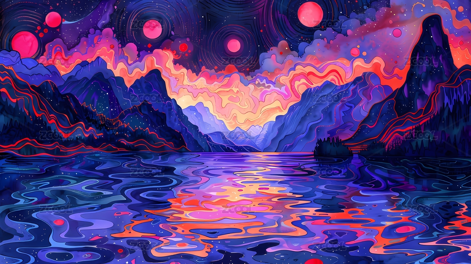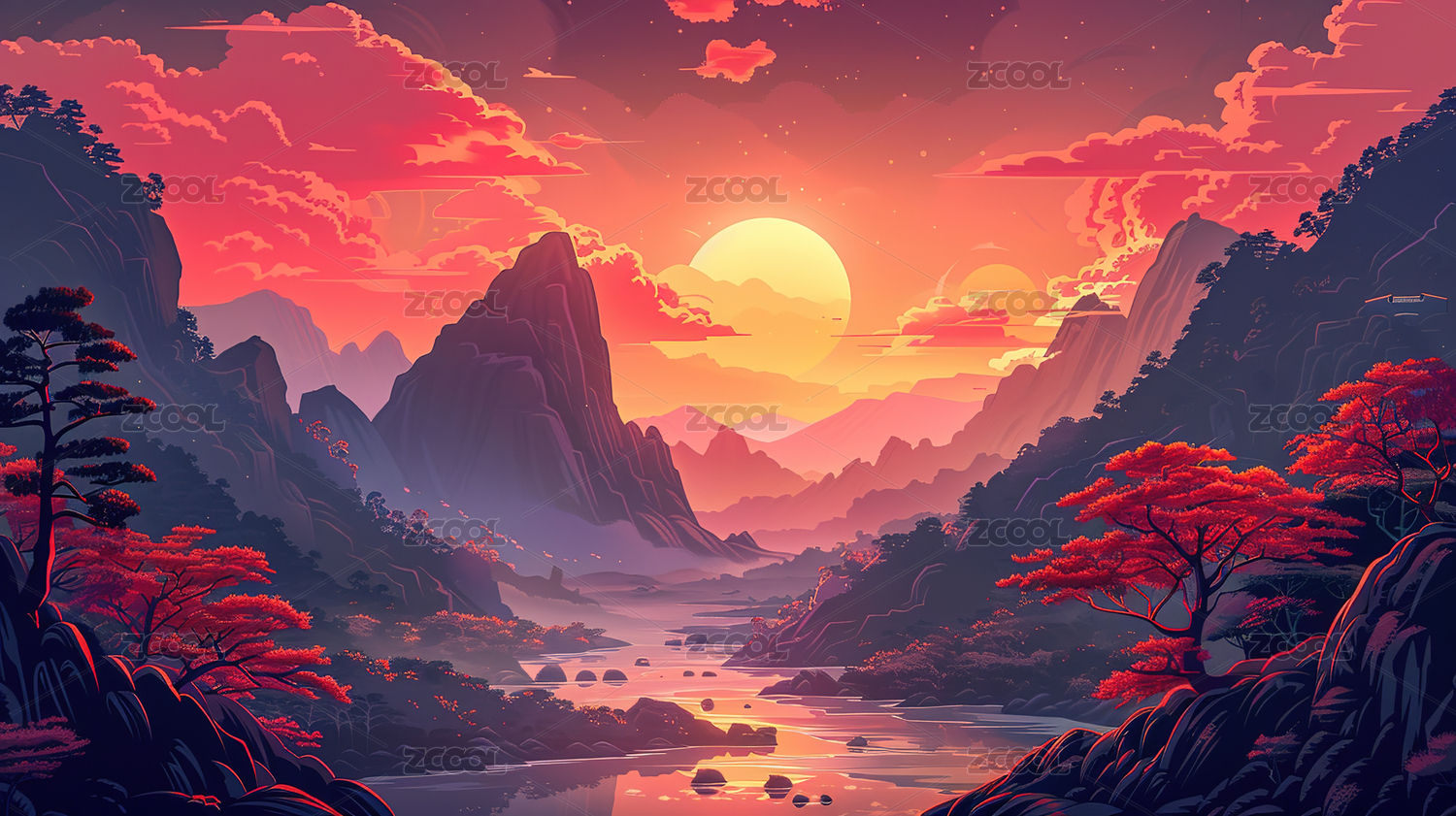 艺术品,美术,多彩,设计,色彩,山水,山,故事书,水彩,插画
