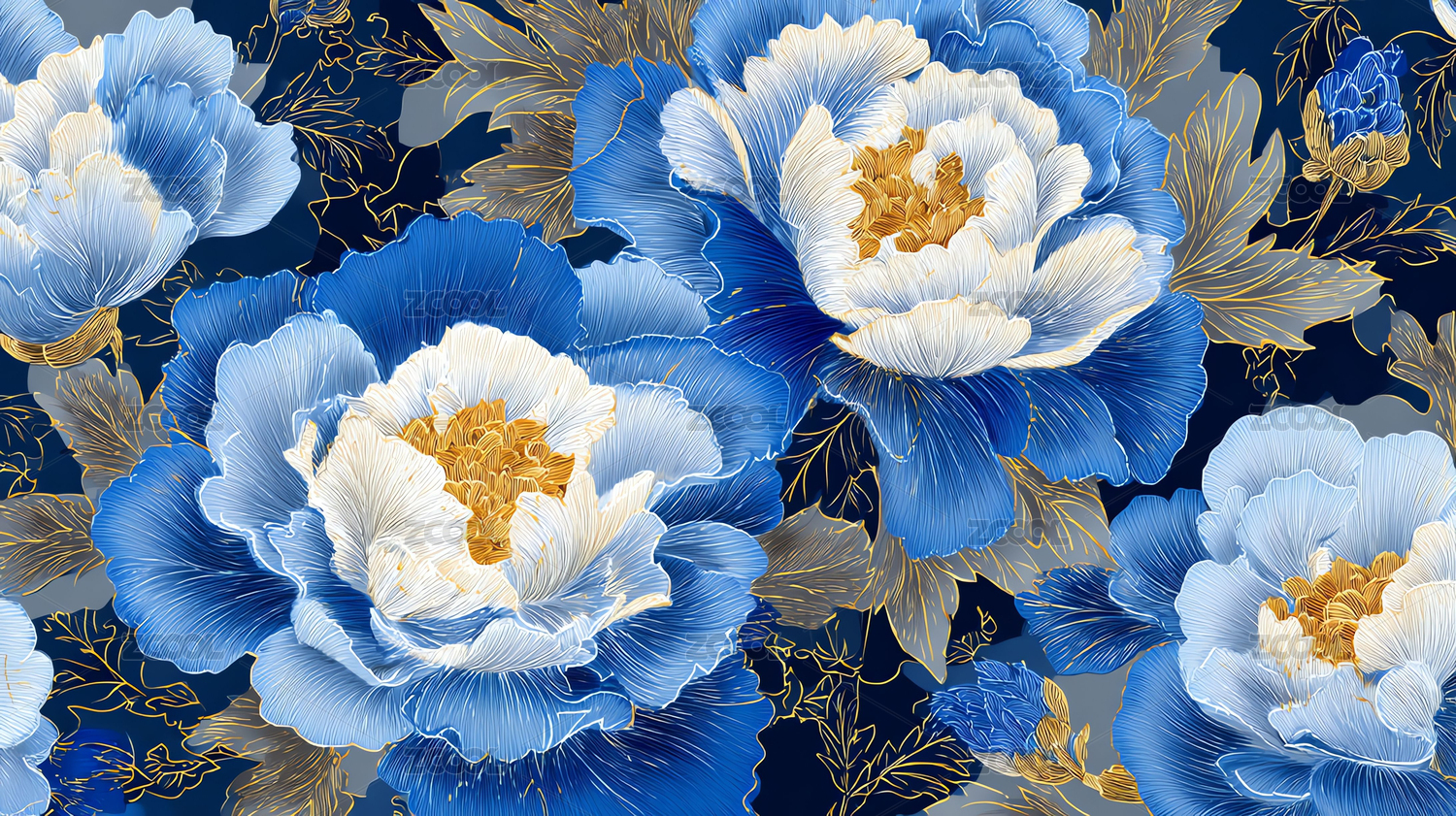 海洋,牡丹,花卉,自然,中国,紫色,天蓝色,金色,图案,艺术