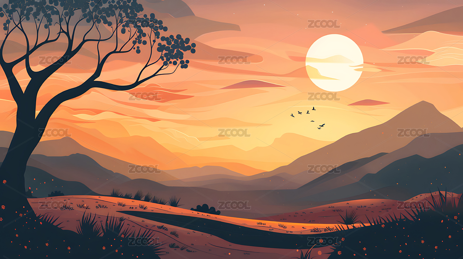 日落时分抽象插画海报背景