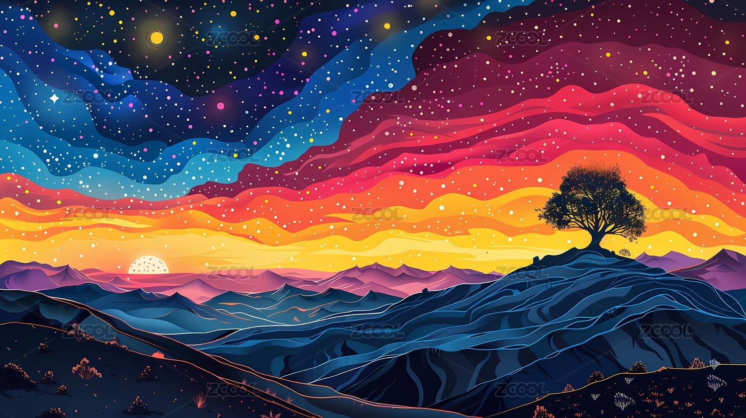 梦幻星空抽象插画海报背景