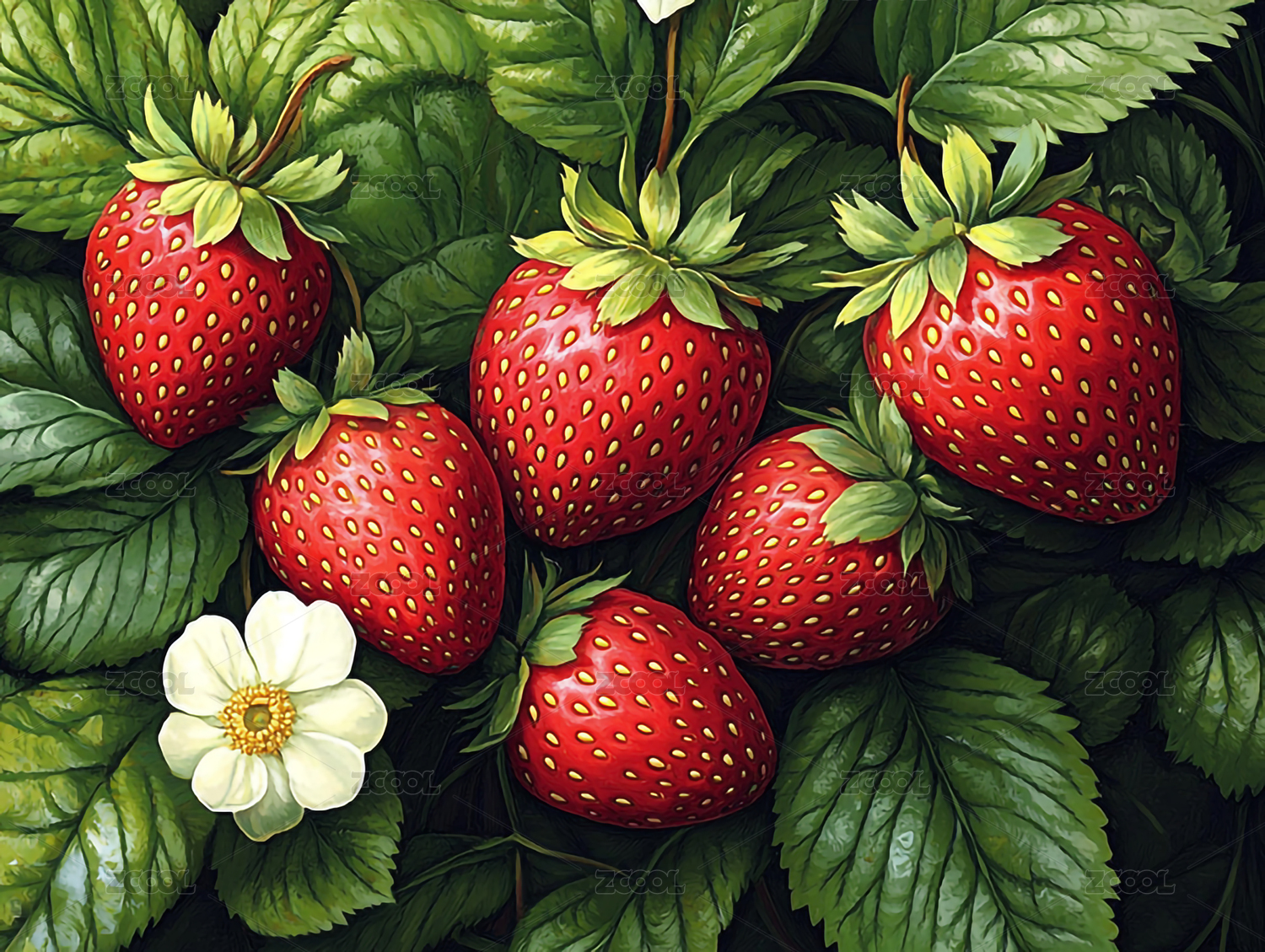 草莓,花,叶子,水果,纺织品,植物,印花,图案,绘画,质地