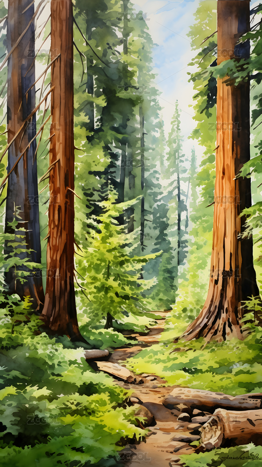 森林,红木,树木,植物,水彩,油画,山水,户外,设计,抽象