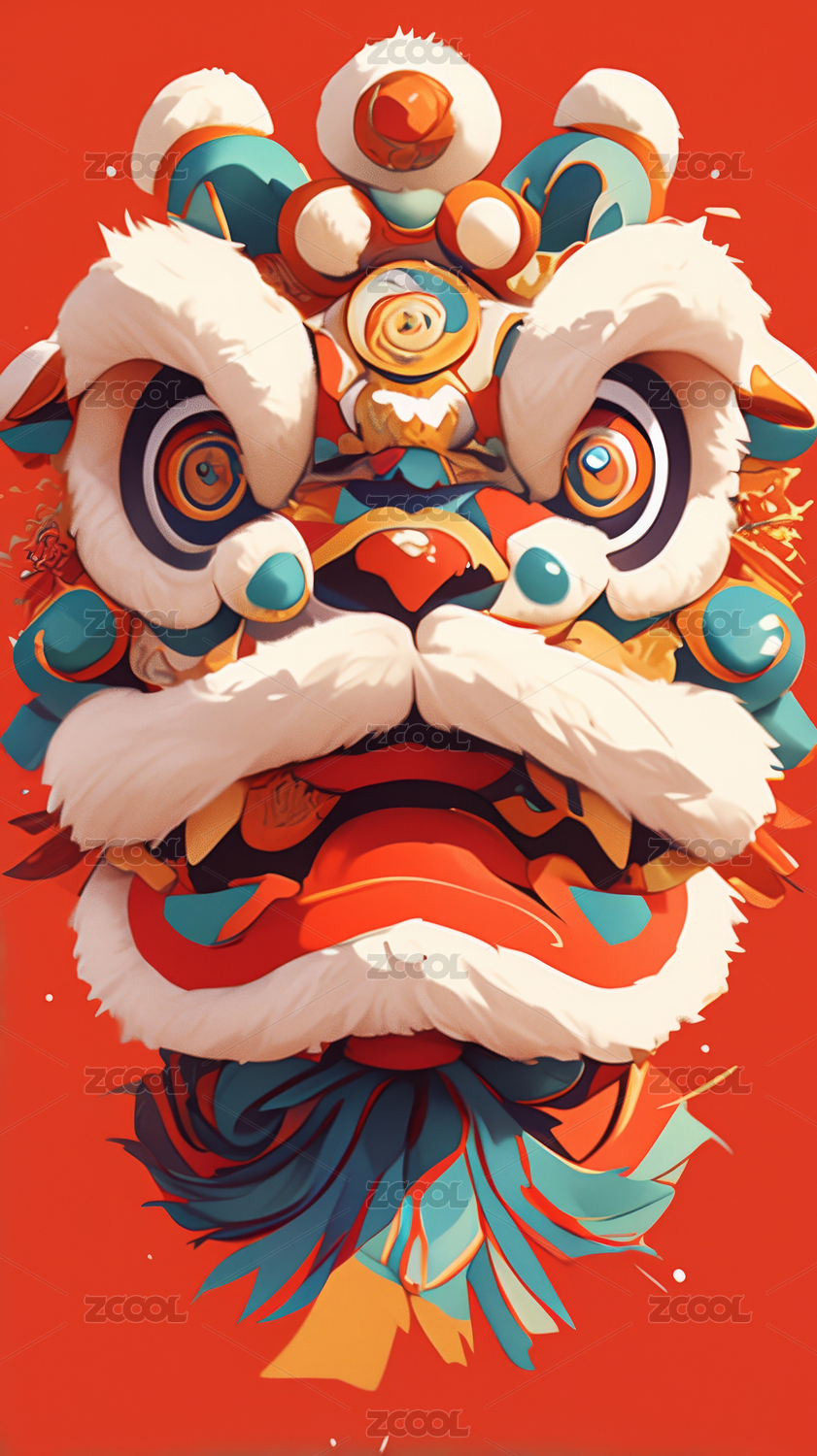 AIGCTP2024,狮子,舞蹈,红色,极简主义,新年,中国,庆典,可爱,卡通