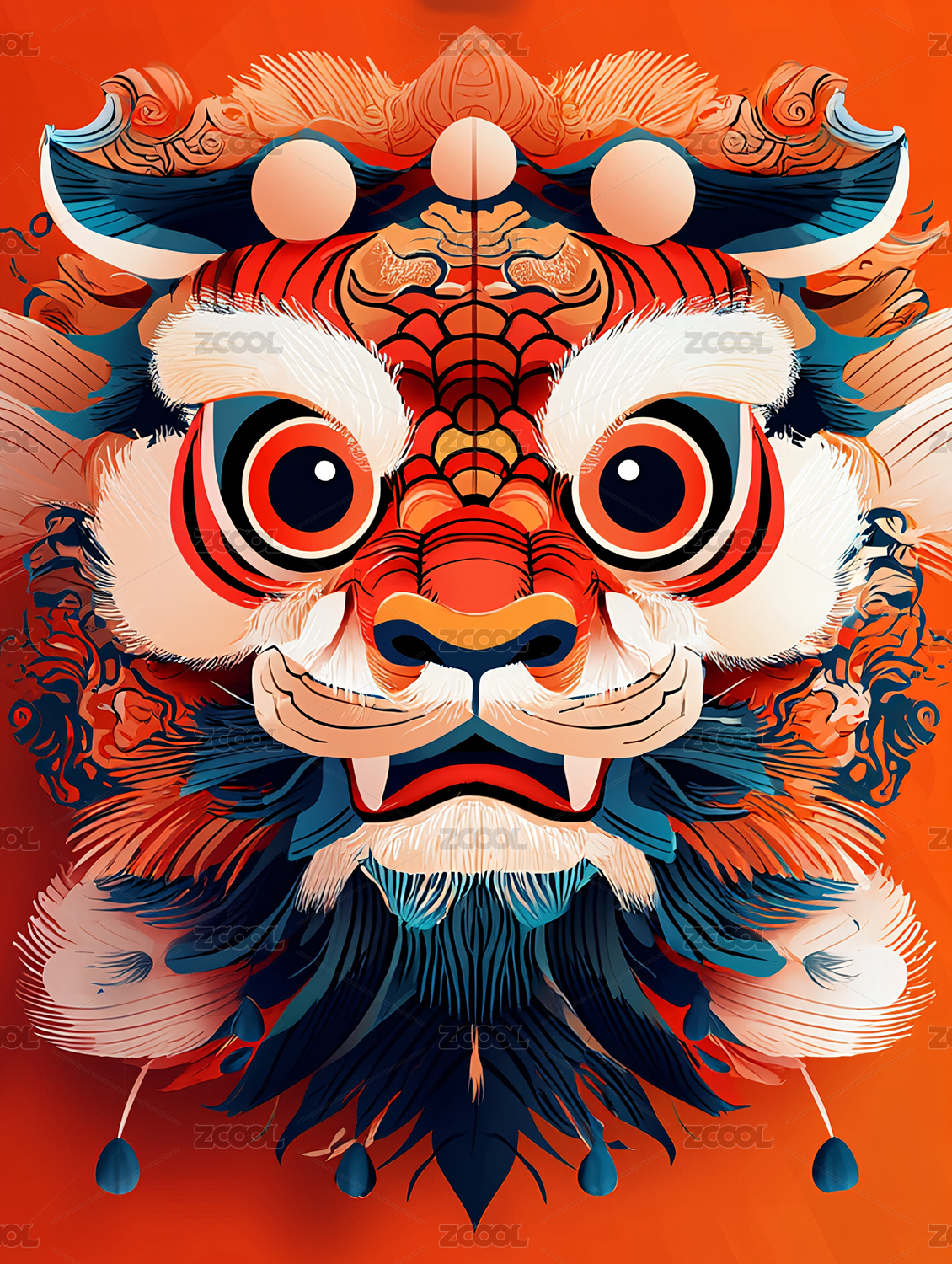 中国舞狮脸谱图案