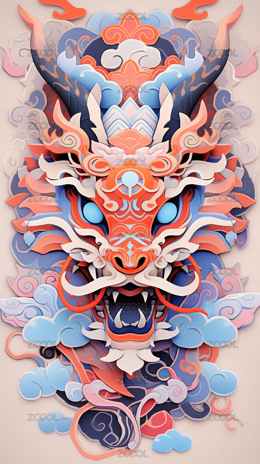 潮流时尚龙头插画