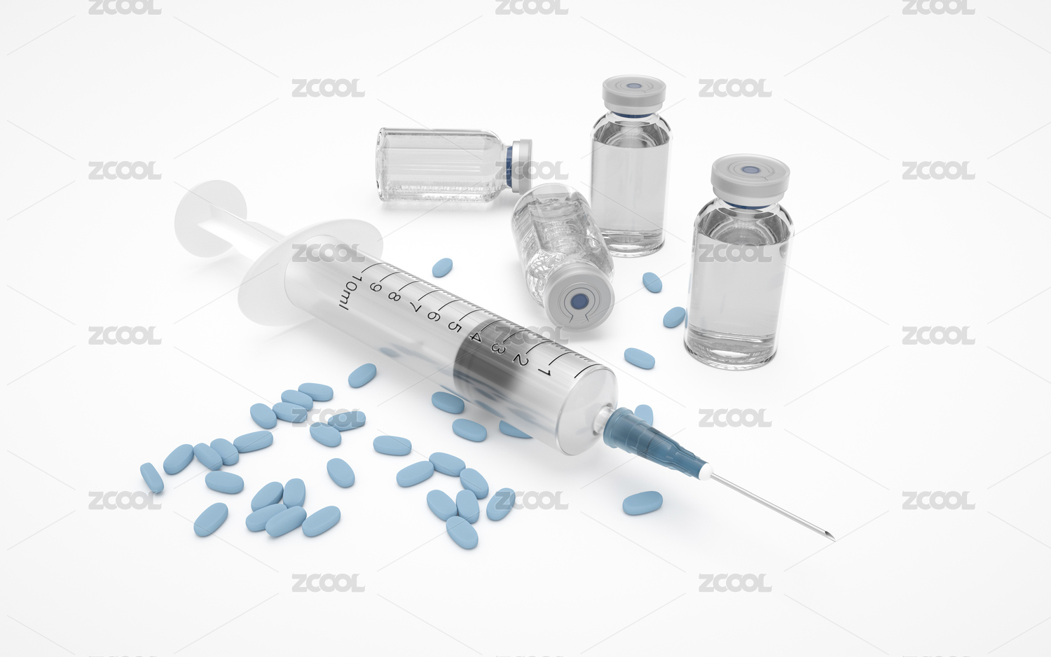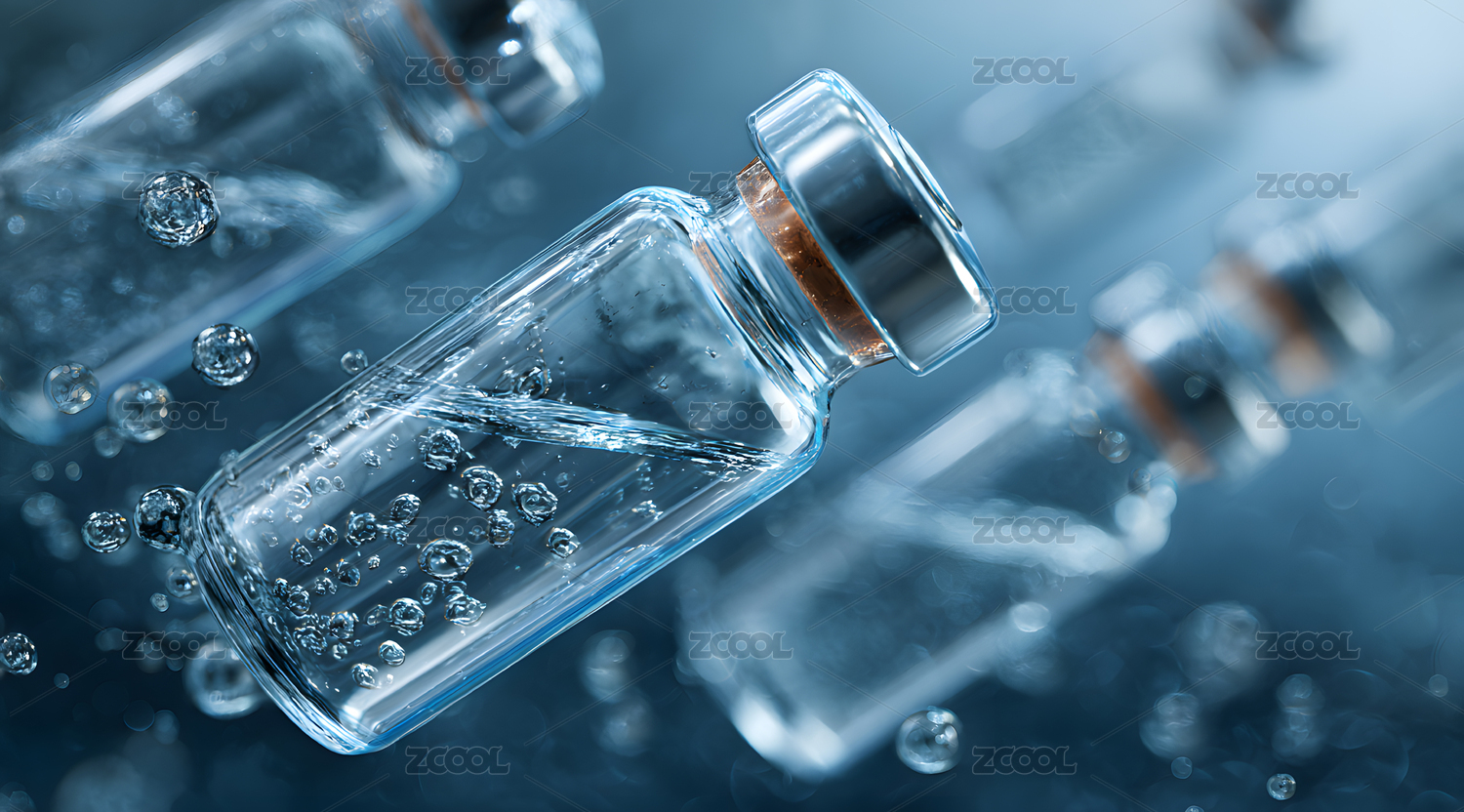 装着黄色胶囊的透明药瓶和周围悬浮着的胶囊