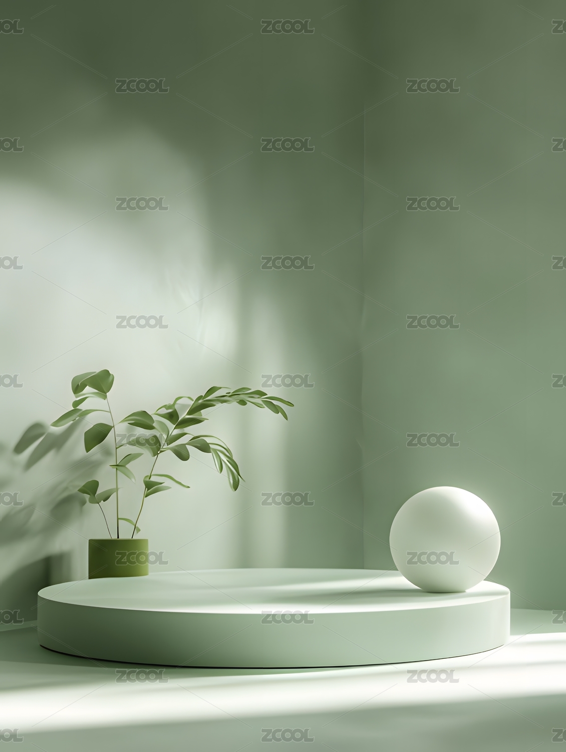3D室内绿色小清新光影地面三维空间场景