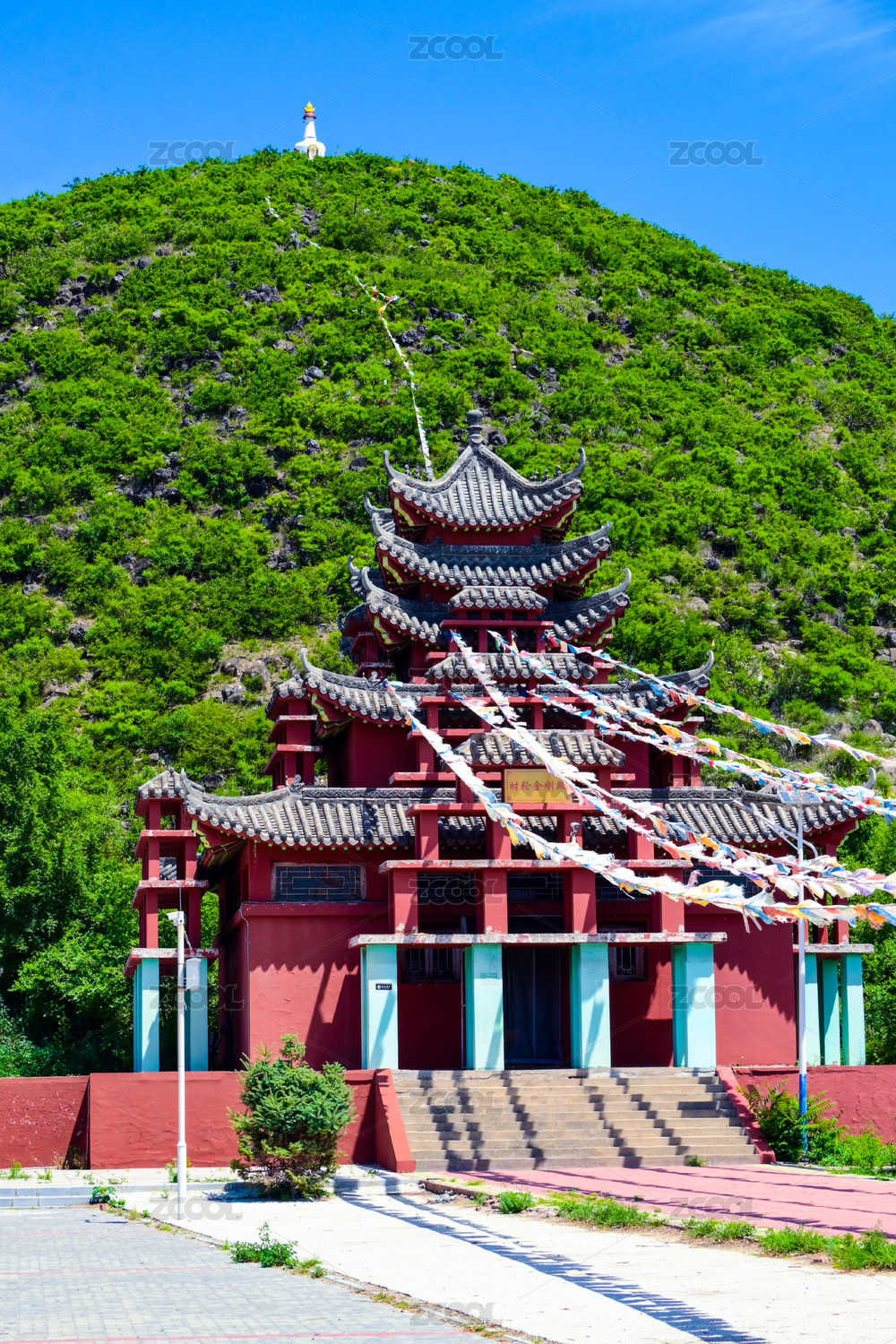 绿意山间的红色古建