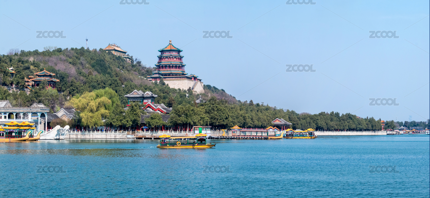 中国北京海淀区颐和园昆明湖对岸的万寿山佛香阁美景