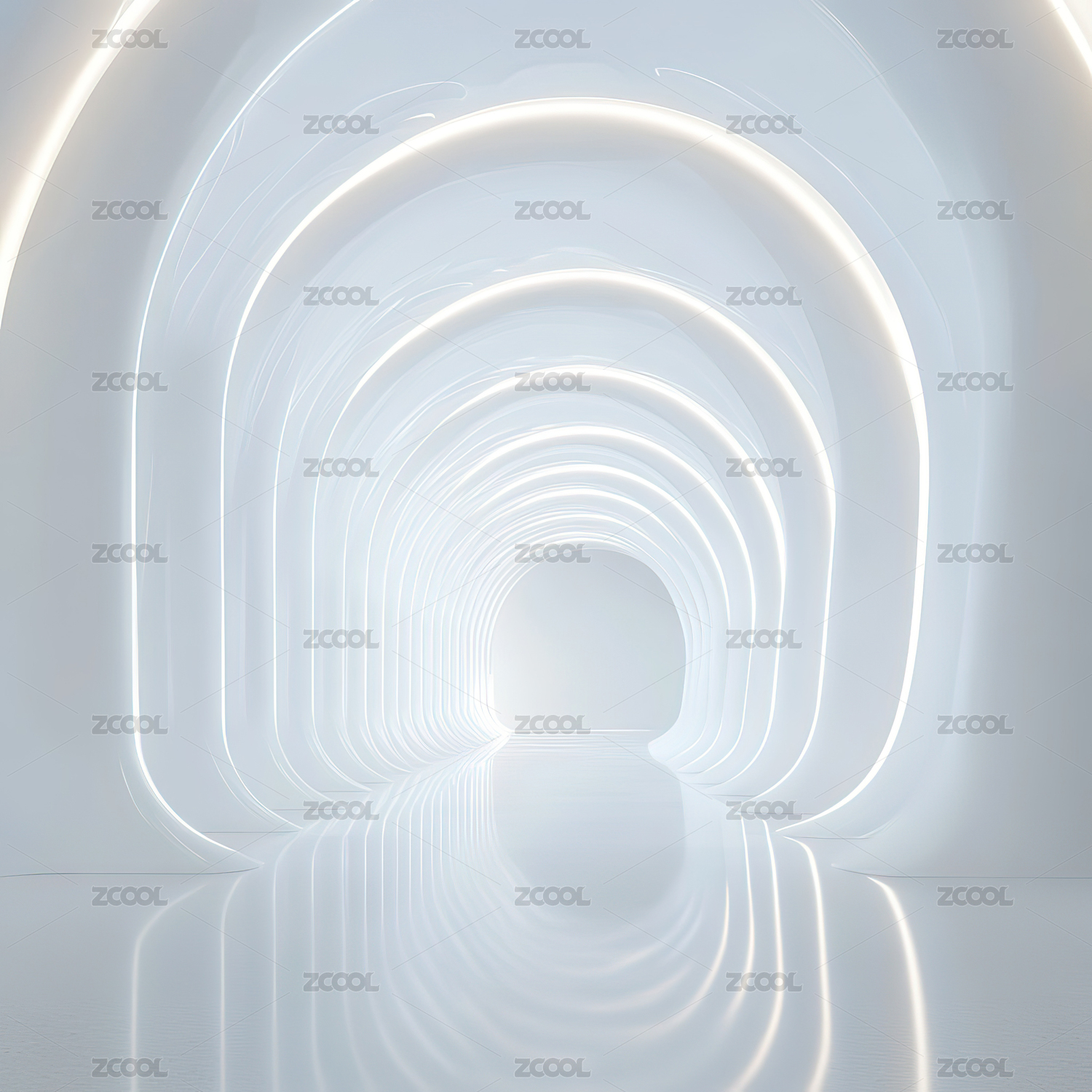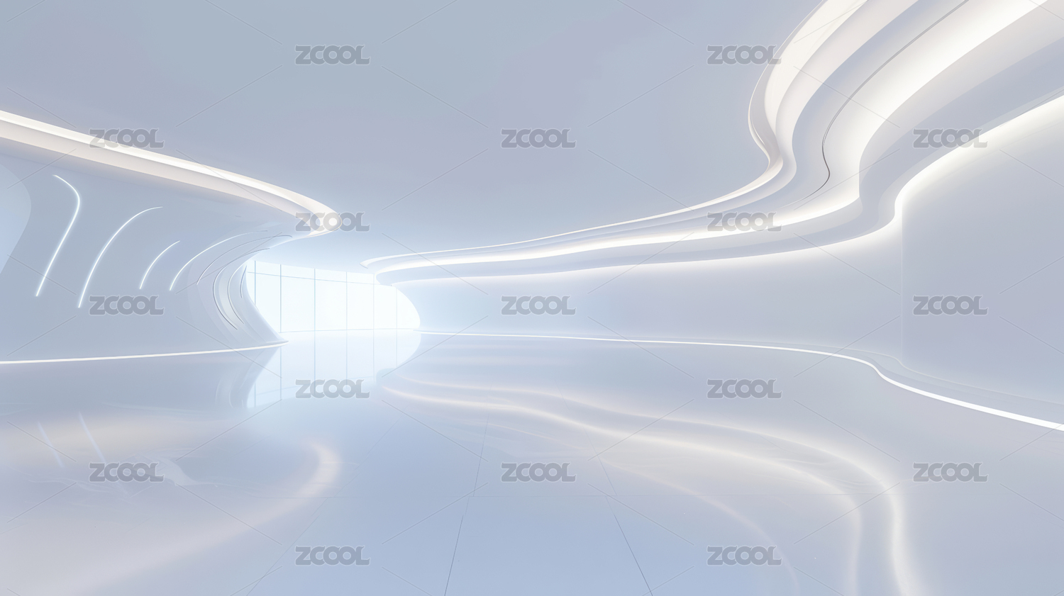 白色灯光流线型极简抽象建筑空间广场地面背