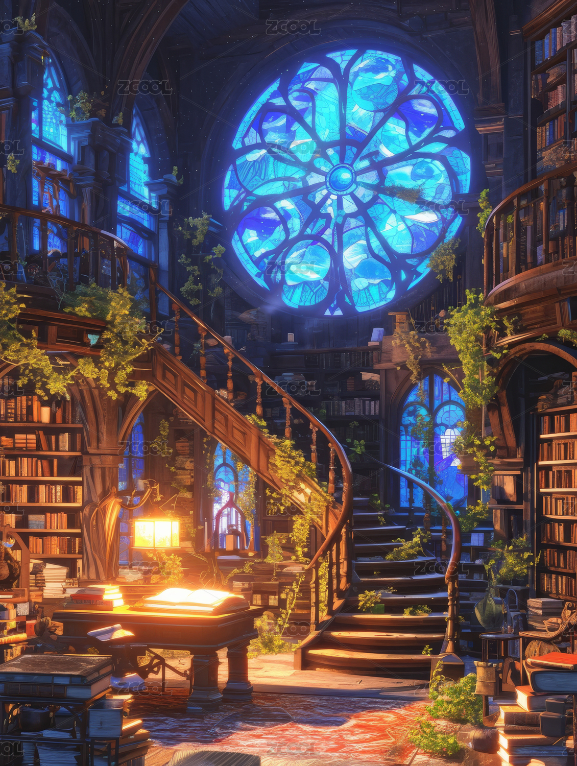 中世纪魔法场景图书馆