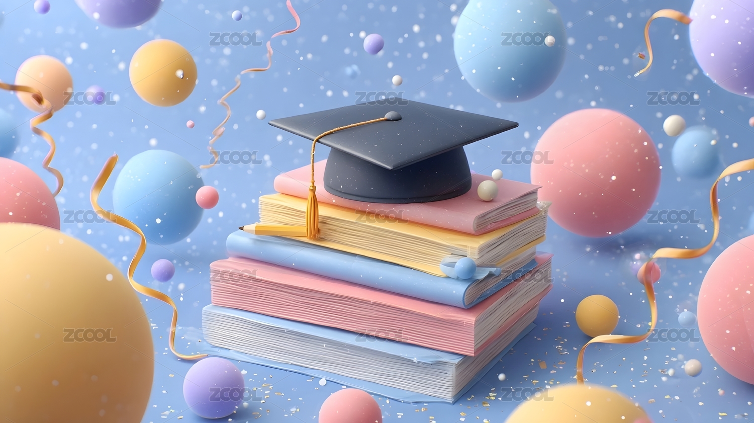 无人,AI数字艺术,插画,庆祝,学位帽,毕业,毕业典礼,教育,文凭,祝贺